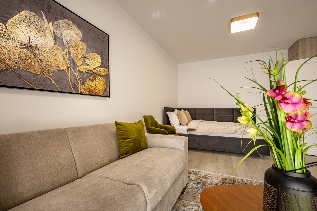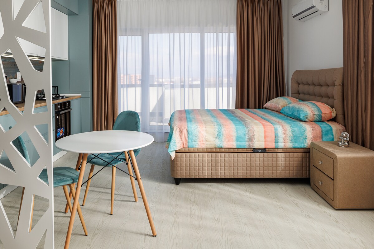 Pamostieties un baudiet satriecošu skatu uz Karpatu kalniem no privātā balkona! Alpine Escape Mountain View Studio apvieno komfortu, stilu un ērtumu, tikai 5 minūšu attālumā no Brašovas pilsētas centra. Ideāli piemērota svinīgām pastaigām Ziemassvētku tirdziņā, slēpošanas nedēļas nogalēm, vasaras pārgājieniem vai mierīgai darba braucienam no jebkuras vietas. Mājīgs, moderns un gatavs jūsu ziemas atpūtai!