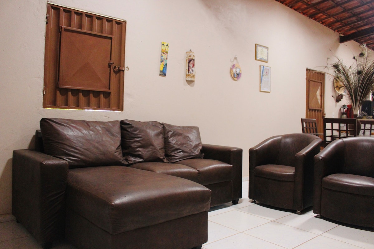 Pilnīga vienkārša māja un populāra apdare. ar gaisa kondicionētāju un bez tā. mājā ir 2 divguļamās gultas 1 vienguļamā 3 tīkli. kopā 8 viesi Māja netālu no trīsstūra vērpēja. Kvadrāts skriešanai un vingrošanai tuvumā. Picērija. Rodoviária +ou- 600metros. Iepirkšanās +vai 800 metri . Reģionālā slimnīca +ou- 500 metri. Koledžas tuvumā. Aptiekas. Maiznīcas. Mercado utt.