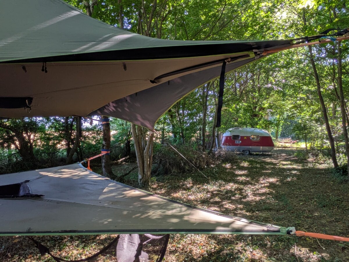 Laipni lūdzam Glamping La Fraventure! Piedzīvojumiem bagāta koka telts bērniem un antīks treileris vecākiem! Atrodas laukos, 7 min attālumā no Lac de Sidiailles (peldēšana, kāpšana kokos, braukšana ar kanoe, pārgājieni), 15 min. attālumā no Boussac, 35 min. attālumā no Montluçon. Iekļauts: privāta sausā tualete, privāta eko duša, Wi-Fi, kopīga virtuve un vannasistaba, baseins,... Brokastis pēc pieprasījuma: 10 € pp(vismaz 2 cilvēki), maltītes katru dienu (pica, grils, kartupeļi utt.)