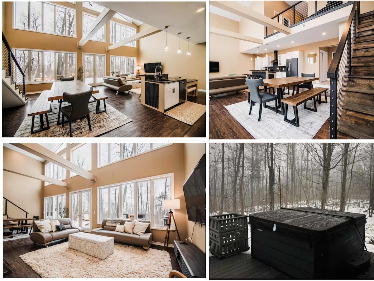 Izbaudiet mūsdienīgo Austur namiņu ar 2 gultām un 2 vannasistabām! Šī stilīgā atpūtas vieta ir ideāli piemērota ģimenei un draugiem, un tā piedāvā luksusa ērtības ar lauku šarmu, un to var izīrēt ar identisku namiņu blakus. Mierīgas guļamistabas un nelieli guļamlofti ar mīkstu gultasveļu un plīša spilveniem, pilnībā aprīkota virtuve, mājīga dzīvojamā zona, liela nosegta veranda, ugunskura vieta pie meža un elektromobiļu lādētājs. Minūtes no Petoskey centra un viss, ko tas var piedāvāt, bet mierīgā un klusā vidē! Bez apgrūtinošas izrakstīšanās!
