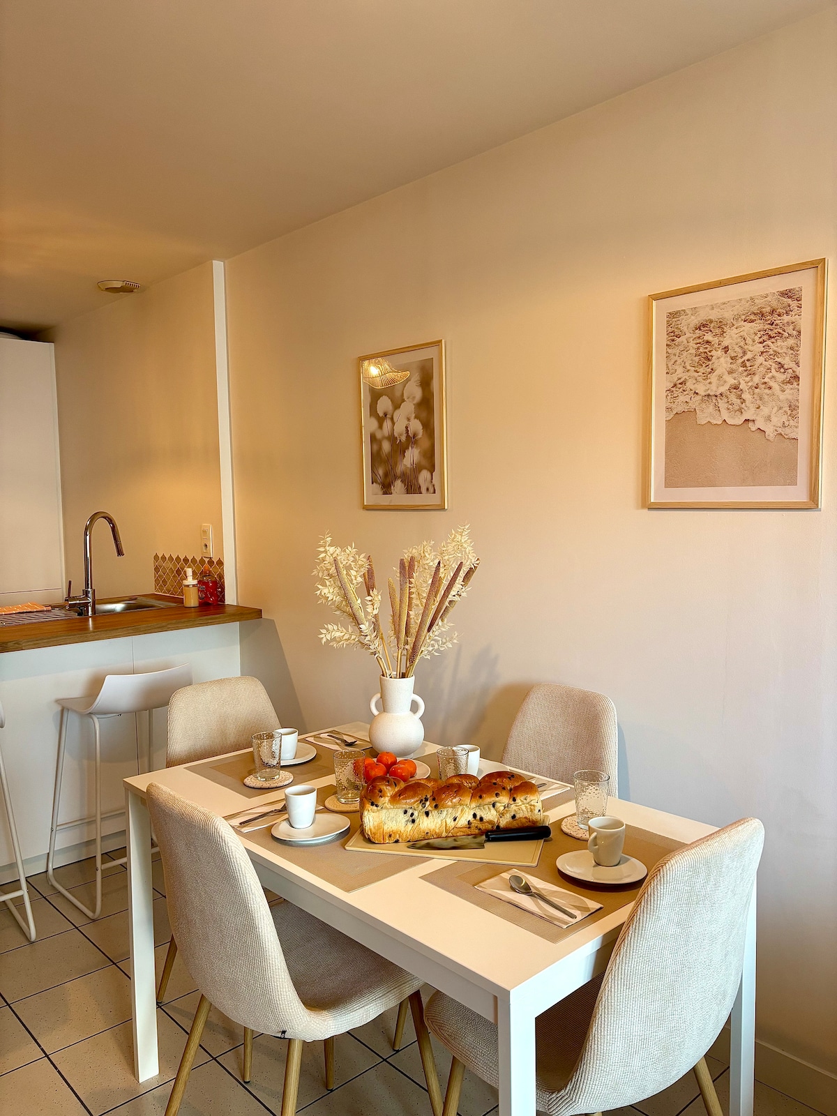 Nāciet un izbaudiet šo raksturīgo rindu māju (90 m2) klusā Brestas rajonā. Ideāli piemērots ģimenes mājokļiem 5 minūšu brauciena attālumā no pilsētas centra ar automašīnu Bezmaksas autostāvvieta Aprīkota 5 personām ar iespēju izmantot papildu gultu 2 cilvēkiem uz mezonīna. Guļamistaba ar divguļamo gultu un vienu ar divguļamo un vienguļamo gultu TV, WiFi Neliels jauks dārzs ar terasi Naktsmītne nesmēķētājiem. Tā nav ballīšu norises vieta. Jauniešu un studentu grupu pieprasījumi netiks pieņemti.
