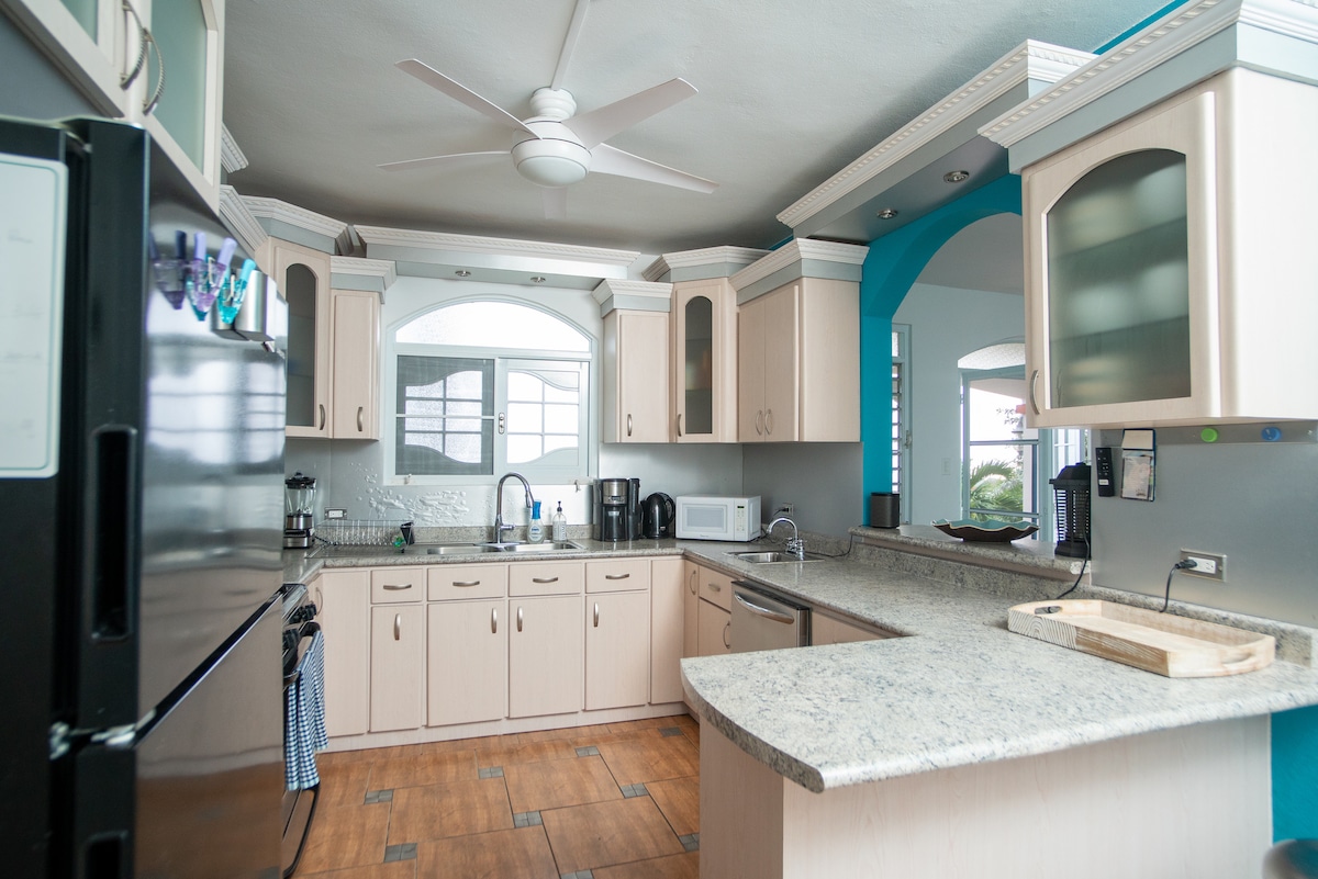 Pēc piedzīvojumu dienas šī ir ideāla, budžetam draudzīga vieta, kur labi un ērti atpūsties naktī. Nekādu kaitinošu/trokšņainu kaimiņu, ar kuriem jātiek galā. Īsā 10 minūšu brauciena attālumā atrodas Rincon pilsētas centrs un slavenās pludmales. Šim lidojumam lejup pa kāpnēm aizmugures terases līmeņa istabā ir privāta ieeja/privāta vannasistaba. Aprīkots ar 2 divguļamajām gultām, AC un 2 griestu ventilatoriem. Mini ledusskapis, mikroviļņu krāsns un kafijas automāts/pamataprīkojums. Wi-Fi, Roku Smart TV ar papildu vietējiem gaisa kanāliem.