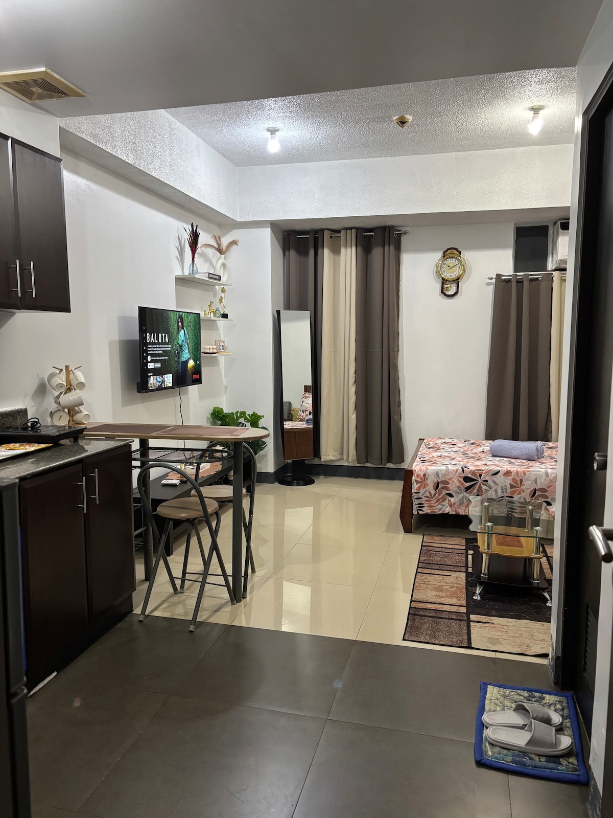 Welcome to Your Suite Escape—nestled right in the vibrant entertainment hub of Tomas Morato, Quezon City! Explore trendy cafés, indulge in local dining, or simply unwind after a long day with cozy movie nights on Disney+ and Netflix right in the comfort of your suite. Enjoy a thoughtfully designed studio with warm interiors, natural light, and hotel-style comforts. If this place is booked on your date, check out our other themed spot at airbnb.com/h/your-suite-escape-the-26th-at-tomas-morato