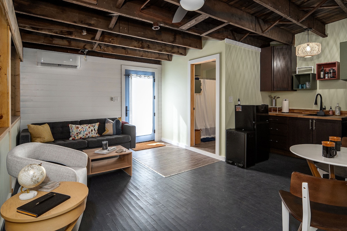 Located on Commercial Avenue, this stylish stay is just a short walk to downtown restaurants and shops — yet tucked away on the back side, giving you the peace and quiet you want at the end of the day. Park the car, walk to dinner, then come back and relax in your own quiet corner of town. Simple. Private. Walkable. We’d love to host you!