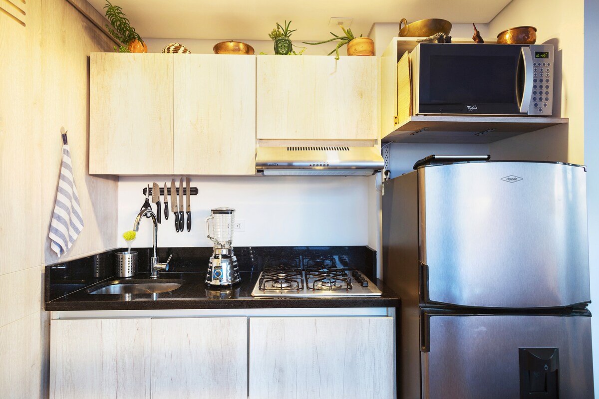 Iespaidīgs un mājīgs dzīvoklis, jauns. Trešais stāvs, nav lifta, 1 vannasistaba, ir jaunas mēbeles un aprīkojums: ledusskapis, veļas mašīna, karstais ūdens, viesistaba, ēdamistaba, pilnībā aprīkota virtuve, ātrgaitas Wi-Fi (150 MG), televizors, autostāvvieta un privāta apsardze. Tam ir moderns dizains, kas ir ideāli piemērots atpūtai un mājas darbiem. Apkaimē ir pirmās nepieciešamības veikali, tūrisma objektu tuvums, tirdzniecības centri (Fontanar/CentroChia) un prestižas universitātes pilsētiņas