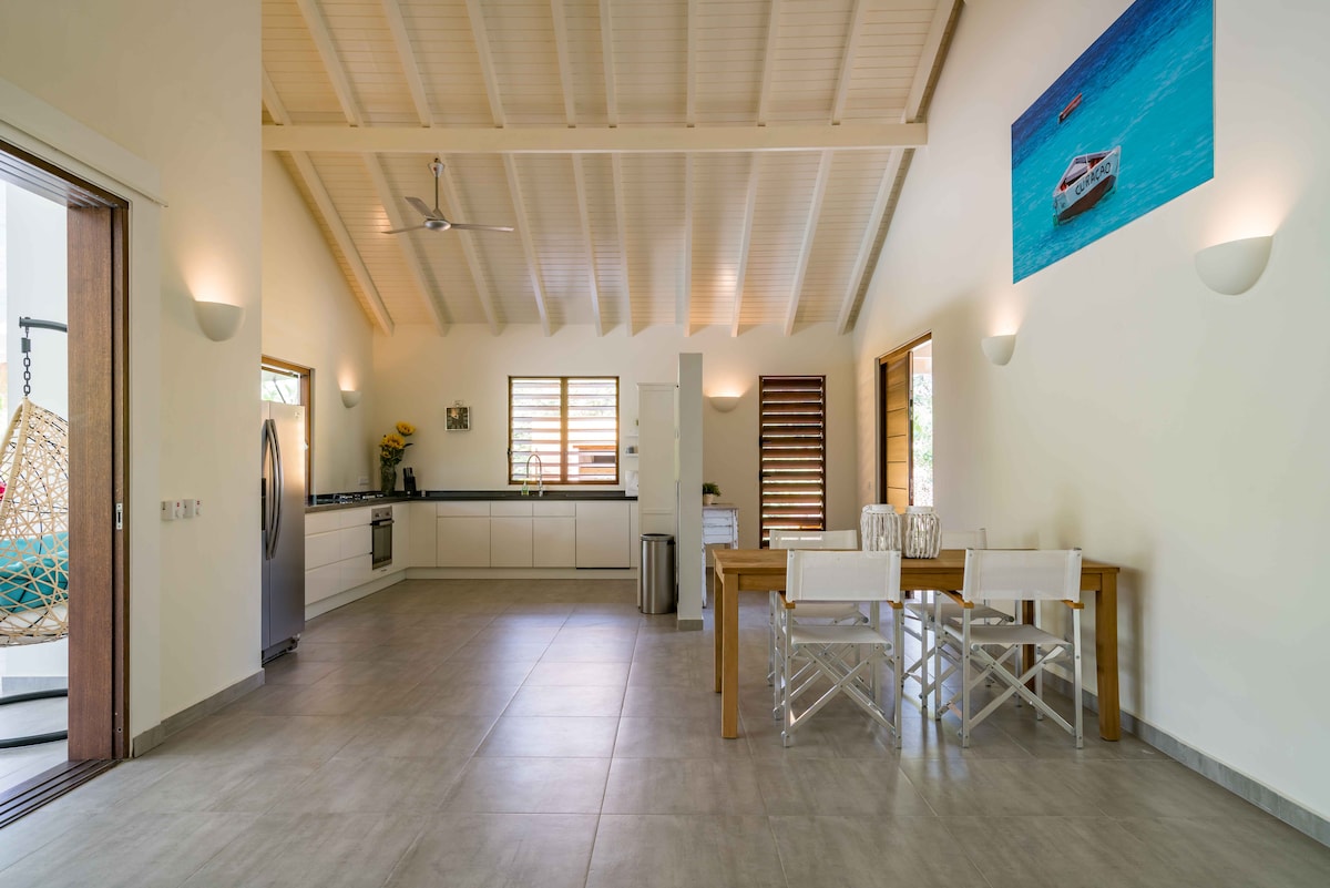 Šajā unikālajā 3D apdrukātā betona mājā ir privāta ala ar tiešu piekļuvi okeānam. Ieejiet no bungalo alā un ienirstiet kristāldzidrajos Karību jūras ūdeņos. Snorkelēšanas laikā pamaniet delfīnus, tunci un košus koraļļus. Mēs nodrošinām aprīkojumu, dzesēšanas krūzi, SUP bez maksas. Izbaudiet kokteili džakuzi pie klints ar satriecošu skatu uz jūru un labākajiem saulrietiem uz salas. Īpašumā ir divi privāti, spoguļattēlu bungalo. Sazinieties ar mums, lai izīrētu abus, lai viss būtu ekskluzīvs.