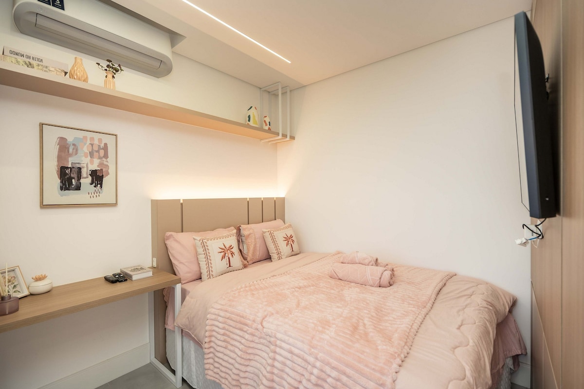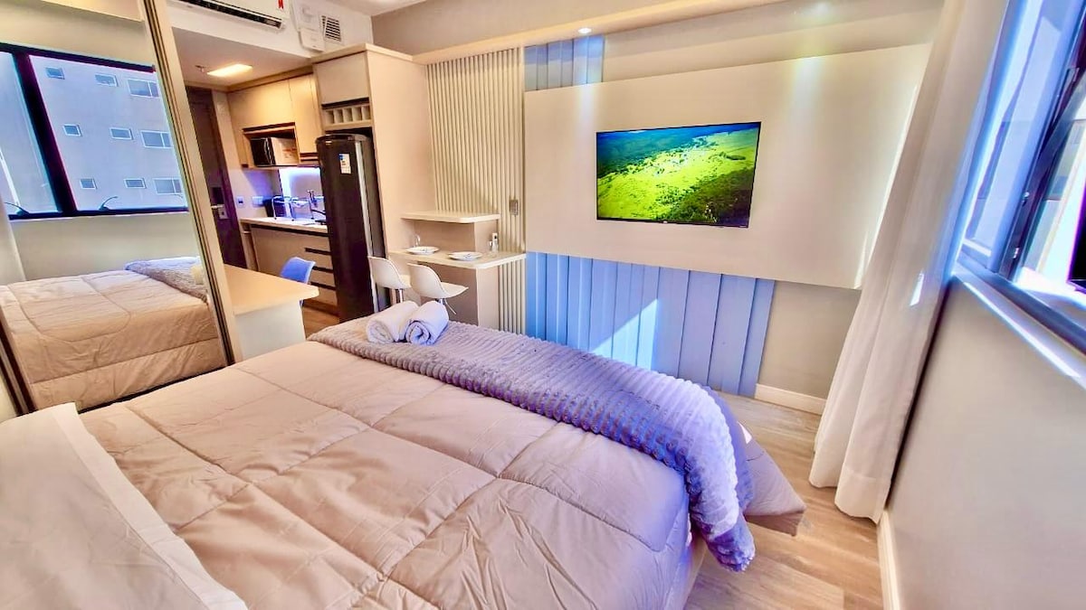 Laipni lūdzam Studio Prime! Vienā no labākajām vietām Kuritibā, netālu no visa: bāri, restorāni, Pequeno Príncipe slimnīca, FAE un apskates objekti. Viss bija pārdomāts, lai sniegtu praktiskumu un siltumu, ar plānotām mēbelēm, virtuvi, kas aprīkota ar nepieciešamajiem piederumiem. Viedtelevīzija guļamistabā un viesistabā, karstais un aukstais gaiss. Ērta gulta, dīvāngulta, gultasveļa un vanna. Šī ir ideāla studija, kas paredzēta darbam, pastaigai vai citam iemeslam. Veltiet laiku un rezervējiet tūlīt!