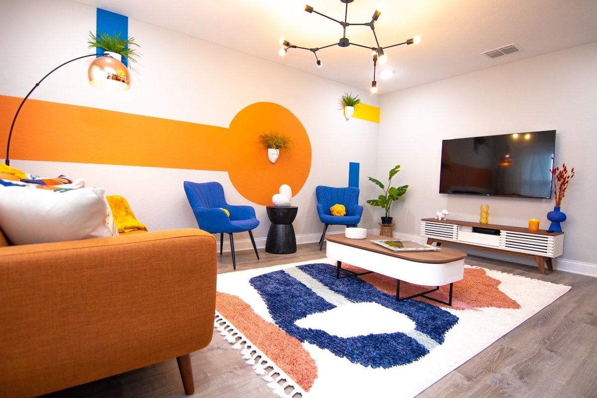 Jūsu mājoklis prom no mājām! Izklaidējieties kopā ar visu ģimeni šajā unikālajā un stilīgajā mājoklī. Jums būs viss nepieciešamais, lai atslābinātos un atslābinātos. Tā atrodas mazāk nekā 10 minūšu attālumā no Legolandes, restorāniem un veikaliem. Šī māja piedāvā 3 BR un 2 pilnas BA, kā arī pilnībā aprīkotu virtuvi. Visās guļamistabās ir TV, kumode, skapis un atmiņas putu matracis. Galvenajā guļamistabā ir divguļamā gulta, bet pārējās divās guļamistabās ir pilna izmēra gultas. Ir pieejams Wi-Fi un autostāvvieta.