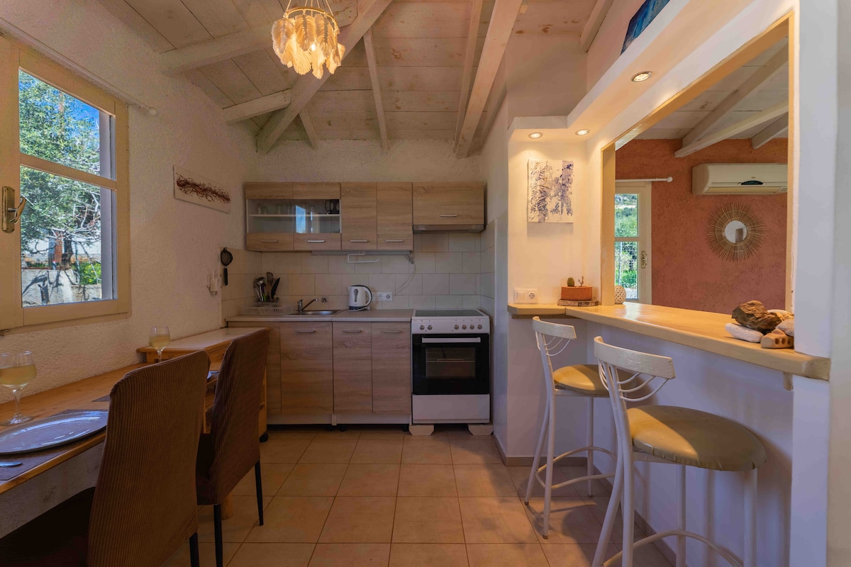 Mūsu īpašums ir skaista māja, 100 metru attālumā no Barbati pludmales, viena no labākajām Korfu pludmalēm. Tā atrodas 17 km attālumā no Korfu pilsētas, kas ir iekļauta UNESCO Pasaules mantojuma sarakstā. Māja ir piemērota vasaras brīvdienām no 30. aprīļa līdz 30. septembrim . Tajā var gulēt 4 cilvēki, ideālā variantā 2 pieaugušie un 2 bērni. Mājai ir ļoti labiekārtots pagalms-balkons, kur var ieturēt brokastis vai pēcpusdienas kafiju zem saulainām vasaras debesīm. Ir viena guļamistaba ar vienu divguļamo gultu un diviem ērtiem dīvāniem pie sēdvietas, vannas istaba, virtuve un āra privātā telpa.Arī tiek piedāvāts bezmaksas Wi Fi. Pludmale ir burtiski vienu minūti kājām, un ir vairāki restorāni un kafejnīcas tuvumā. Māja ir ieskauta zaļā un puķes Ja jums ir citi jautājumi par māju vai platību, nevilcinieties sazināties ar mani.