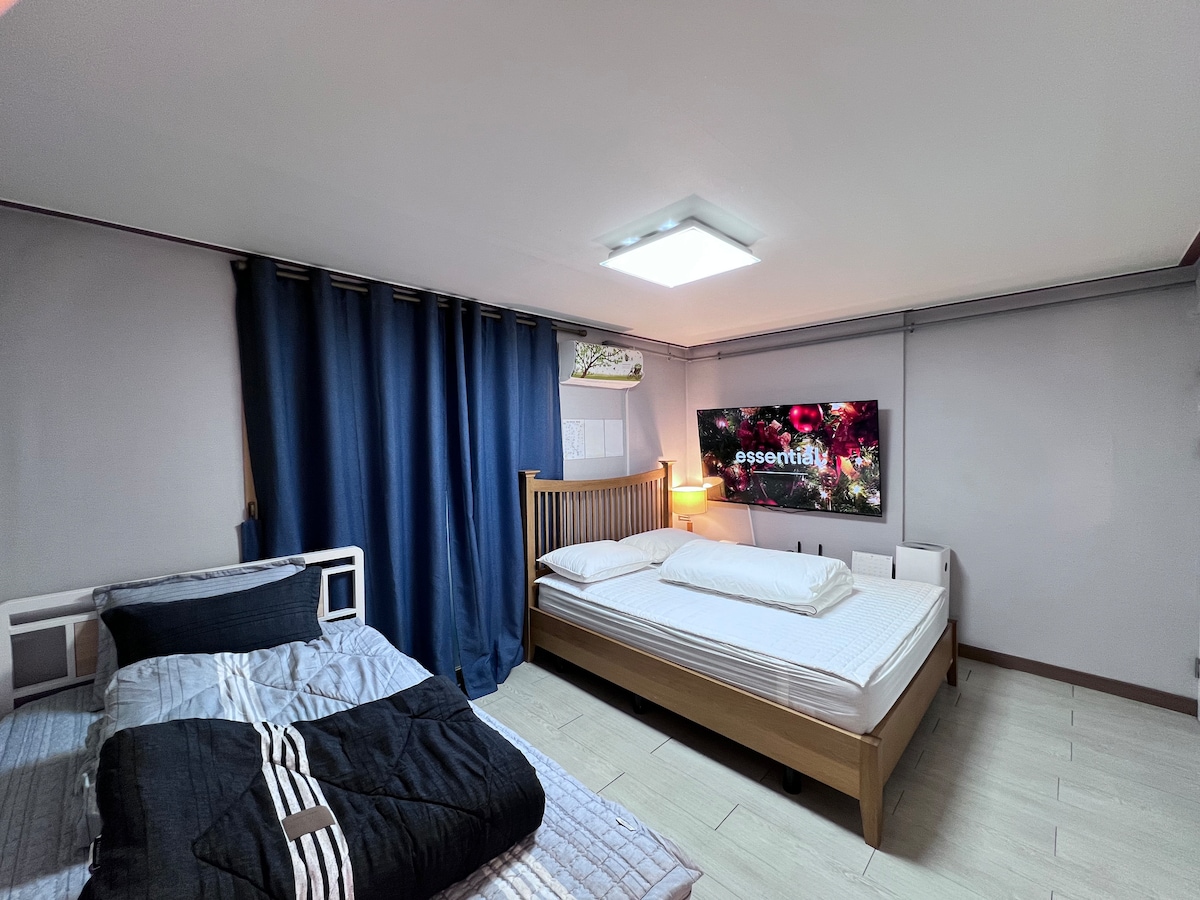 ➡️ Atrodas starp Jeonmin, durvju aili Daudz ēstuvju➡️ tuvumā esošajā ēdienu alejā!, pirmās nepieciešamības preču veikals slēgts! ➡️ Tualetes piederumi Šampūns, procedūra, ķermeņa mazgāšanas līdzeklis, putu tīrīšanas līdzeklis, Zobu pasta, zobu birstes, dvieļi un žāvētājs ➡️ Virtuves, viesistabas piederumi Katls, cepešpanna, galda piederumi, karotes un kociņi, virtuves nazis, atdalīšanas nazis, šķēres, griešanas dēlis, Soju glāzes, viskija glāzes, ūdens glāzes, salvetes, Divvietīgs galds, daudzfunkcionāla krēsla statuja, Putekļsūcējs, veļas mašīna, ledusskapis, žāvētājs utt. ➡️Galvenā istaba Gulta, dīvāngulta 2 personām, skapis, pakaramais, TV (netflix, youtube), Wi-Fi 5G, Naktsgaldiņš, rakstāmgalds, krēsls utt. Klusums, gaisa kondicionētājs, apkure utt. Skats ir atvērts, vērsts uz dienvidiem. Labi atpūtieties 1,5 istabā❤️