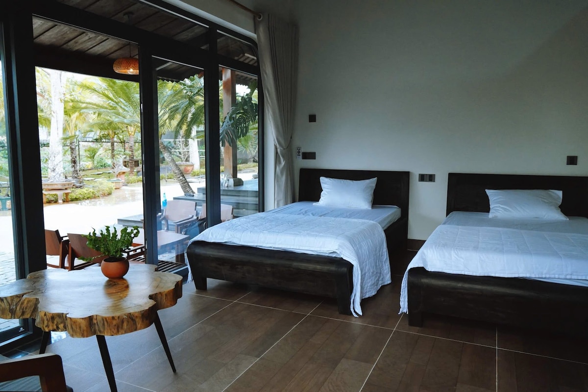 Wake to sunlight dancing on the Gia Nghĩa River, framed by floor-to-ceiling windows in rooms that feel more like suites—airy, spotless, with cloud-soft beds and rain showers. Step outside and you’re already in downtown Gia Nghĩa City, a few lazy minutes from family phở shops, artisan cafés, street food, yet the homestay stays hushed, wrapped in river breeze and birdsong. Warm hosts arrange scooters and share the local secrets that turn a visit into a memory.