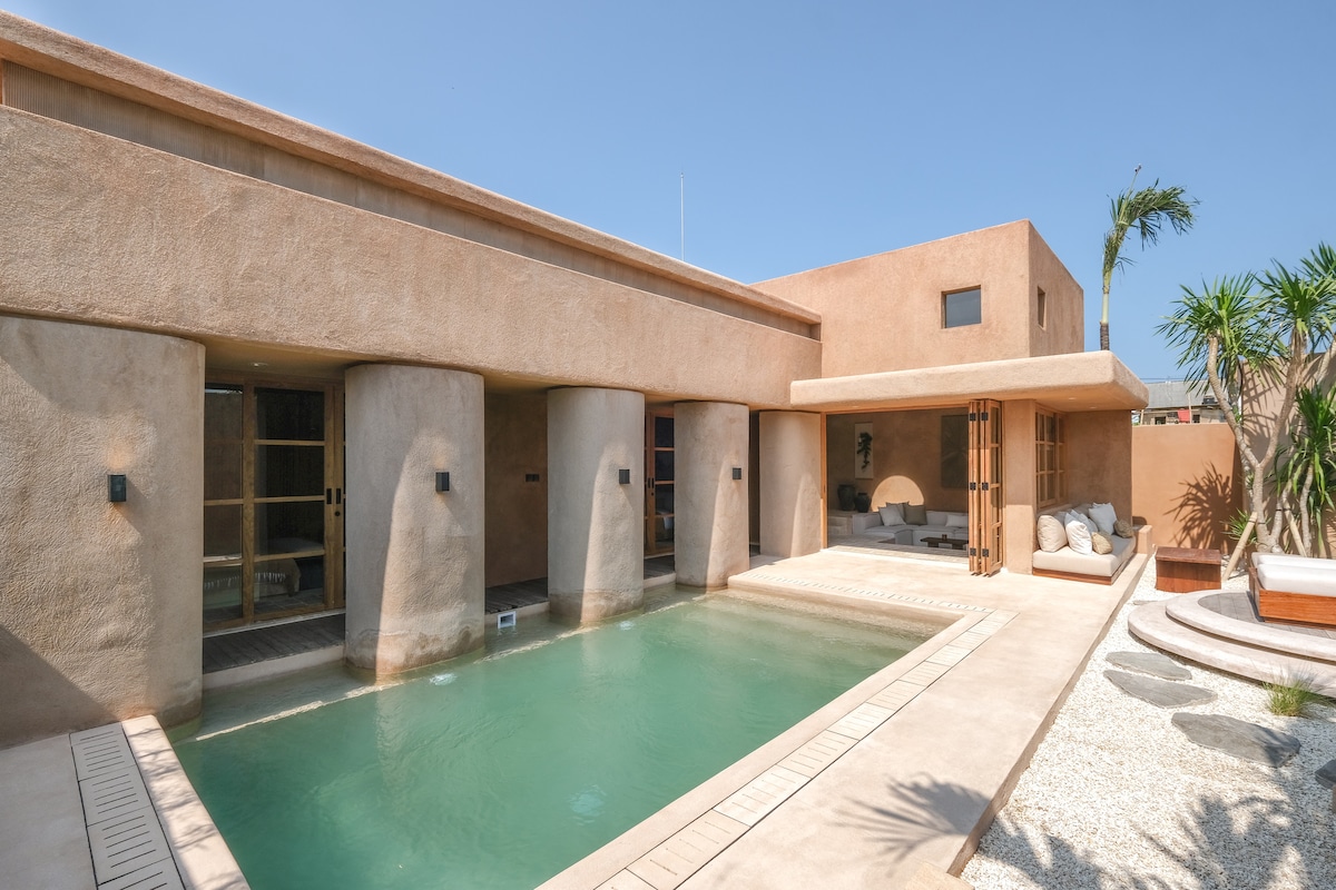 Atklājiet beduīnu loftu - privātu 1BR atpūtas vietu, kas apvieno Vidusjūras šarmu ar tropisko komfortu Pererenanā, Bali. Šī villa ar zemes toņiem un organiskām tekstūrām ir mierīgs patvērums individuāliem ceļotājiem, pāriem vai attālinātiem darbiniekiem. Aktualitātes: Dzīvesveids un ēdināšana: netālu no kafejnīcām, restorāniem, Pilates studijām, padela laukumiem un pludmales klubiem. Atpūtieties un uzlādējieties: izbaudiet privātu baseinu, sauļošanās terasi, atskaņotāju kolekciju, šūpoles un āra dušu ideālai atpūtai.