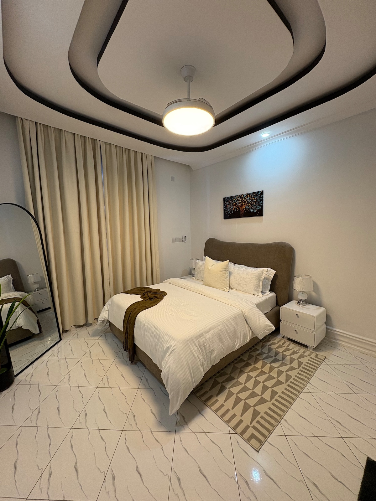 No mūsu 3 guļamistabu dupleksa paveras satriecošs skats uz Dāresalamas ostu un pilsētu. Plašs un stilīgs dizains, kas ir ideāli piemērots ģimenēm vai grupām. Trīs guļamistabas, divas vannasistabas, pilnībā aprīkota virtuve, atvērta plānojuma dzīvojamā un ēdamistabas zona, balkons. Galvenā guļamistaba ar "king" izmēra gultu un privātu vannas istabu. 24 stundu apsardze, trenažieru zāle, baseins.Izbaudiet greznību, dzīvojot pašā pilsētas sirdī. Rezervējiet tūlīt, lai nodrošinātu ērtu un patīkamu uzturēšanos.