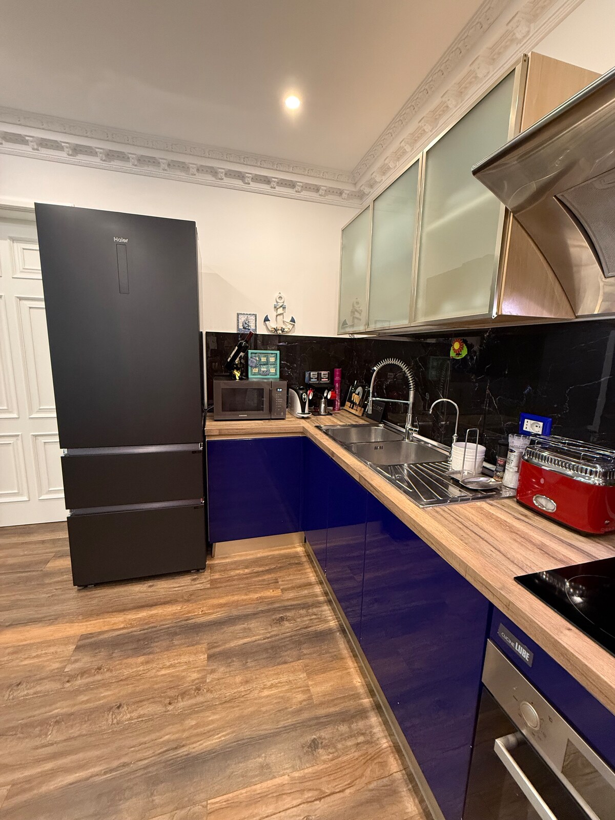 Izbaudiet moderno greznību mūsu skaisti iekārtotajā dzīvoklī, kas atrodas tikai 50 metru attālumā no senatnīgajiem Vloras krastiem. Mūsu dzīvoklis ar satriecošām logu sienām piedāvā elpu aizraujošu fonu jūsu ceļojumam. Izbaudiet pilnībā aprīkotu virtuvi, ātru Wi-Fi, gaisa kondicionētāju un plašu dzīvojamo zonu, kas ir ideāli piemērota atpūtai vai izklaidei. Atrodoties dinamiskajā Lungomare rajonā, jums būs viegli pieejamas labākās maltītes, iepirkšanās un izklaides iespējas, ko piedāvā Vlora.