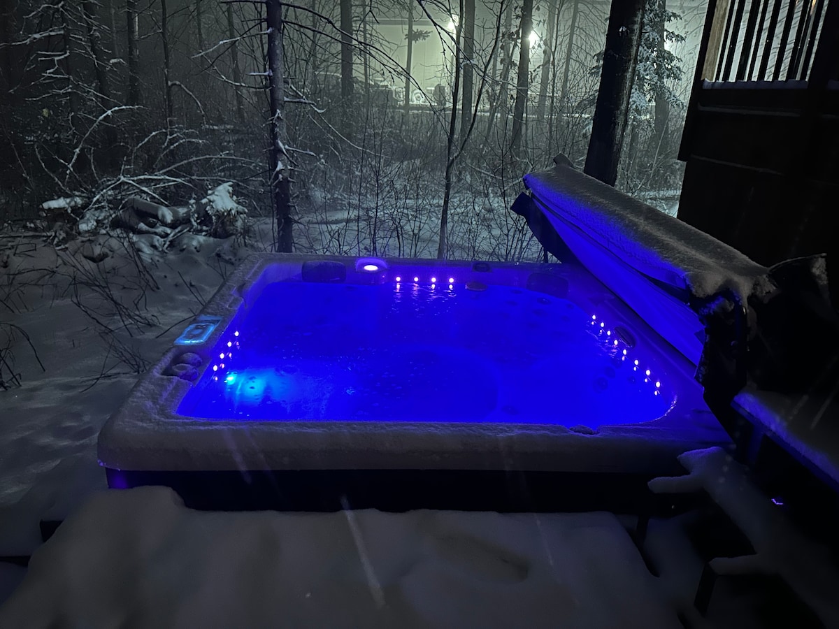 "Chalet Le Boisé" 1 stundu no Monreālas! Neliels kalnu namiņš mežā, 4-6 cilvēkiem. Izbaudiet kokonēšanas garu ar spa, nagiem un kamīniem iekštelpās/brīvā dabā. Satriecoši skati uz ezeru. Ātrgaitas Wi-Fi savienojums darba un atpūtas apvienošanai. Lieliski piemērots ģimenēm, pāriem un attālinātiem darbiniekiem, kuri meklē bēgšanu. Jūs gaida miera osta! piezīme: skats uz ezeru, nav piekļuves ezeram. Lūdzu, cieniet apkaimi 🙂