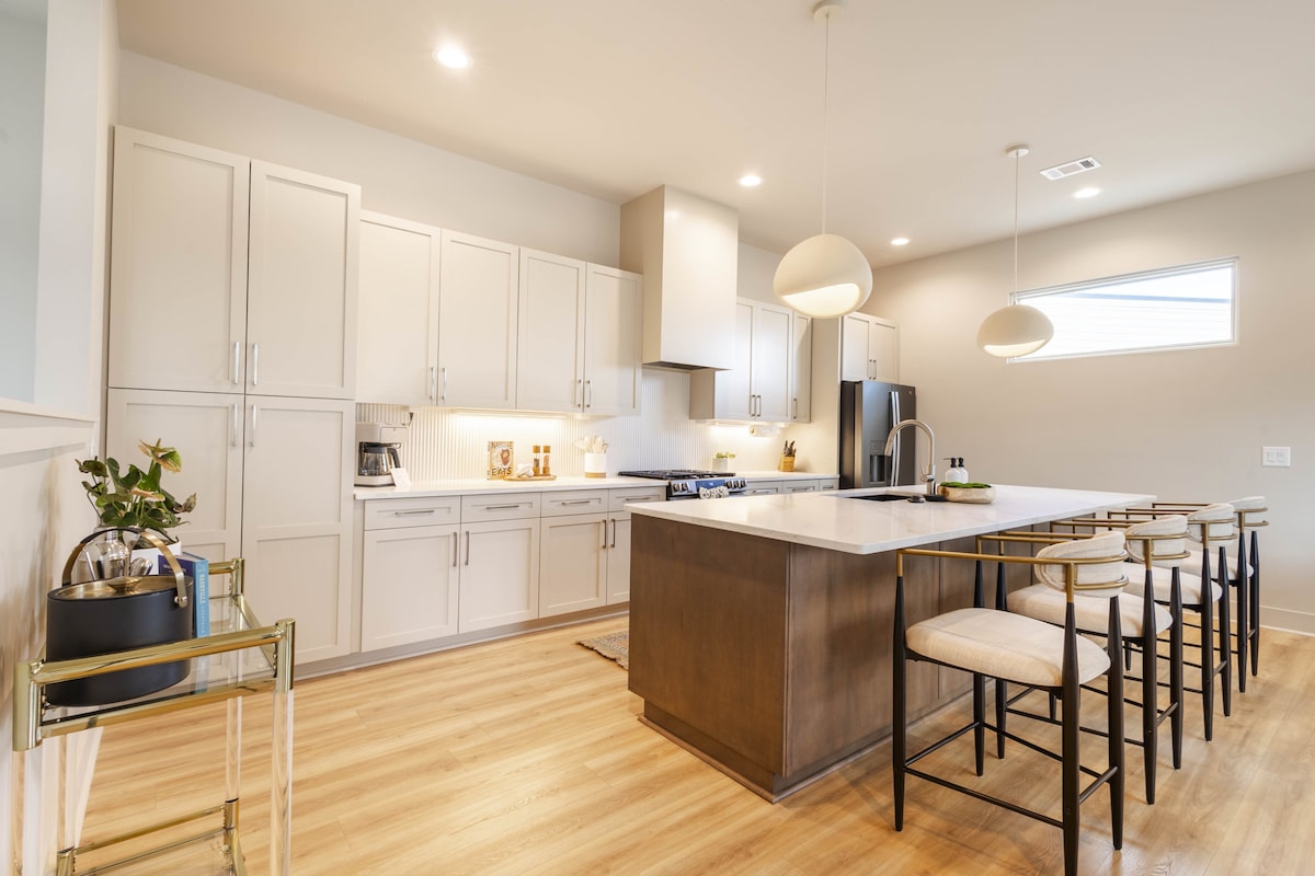 🔥Izbaudiet Nešvilu stilīgi Moxie Manor🔥JAUNS plašs augstas klases mājoklis ar 4 guļamistabām un 4 vannasistabām netālu no Brodvejas ar privātu burbuļvannu uz jumta, ugunskura vietu, grilu un skatu uz pilsētu. IDEĀLI piemērota ģimenes svinībām, dzimšanas dienām, atkalredzēšanās pasākumiem un grupu izbraucieniem (puišu un meiteņu izbraucieniem pirms kāzām). Ērti guļ 12 cilvēki, ar vannasistabu, jumta biljarda galdu, labsajūtas telpu ar saunu un gardēžu cienīgu virtuvi. Dizaineru interjers, Smart TV katrā guļamistabā, bezmaksas autostāvvieta un ātra piekļuve lieliskiem restorāniem pilsētas centrā, 12 South + The Gulch.