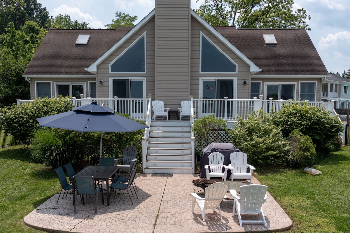 There's nothing like being directly on the water! Relax and rejuvenate in this Chesapeake waterfront estate home which includes private pier, hot tub and fire pit. Crab or fish off the pier or take the kayak out to see the Chesapeake bay wildlife. Try out paddle boarding! Sit around the fire pit at night or watch the stars at night while soaking in the hot tub. Cook wonderful meals in our well-equipped kitchen. Or try some our local restaurants. Great place for families or multi family groups.