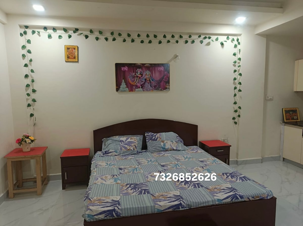 Zaķis Krišna 🙏 Laipni lūdzam mūsu mierīgajā studijas tipa dzīvoklī Vrindāvanā, tikai 2 minūšu attālumā no slavenā ISKCON tempļa un 5 minūšu attālumā gan no Prem Mandir, gan Premanand Ji Ashram, kur tieši ārā var redzēt Premanand Ji. Mūsu studija atrodas mierīgā vietā rosīgajā pilsētā, un tā piedāvā mierīgu atpūtu, kas ir ideāli piemērota atpūtai pēc tuvumā esošo garīgo apskates objektu iepazīšanas.