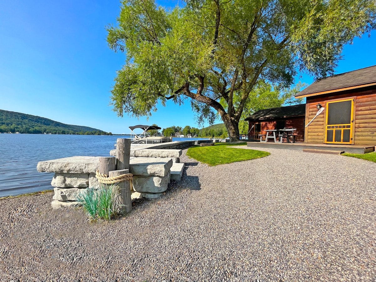 DeRuyter Lake NY Walleye Log Cabin on Water's Edge