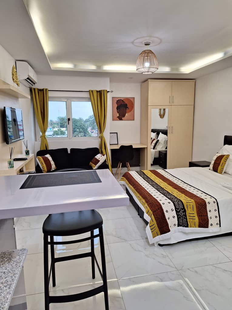 Izbaudiet stilīgu studiju klusā un drošā H24 ēkā 2 ielejās, kur pieejami VTC, taksometri, Glovo Yango Jumia piegādes Lieliska atrašanās vieta: - 5 minūšu gājiena attālumā līdz iepirkšanās centriem - 3 min attālumā no Rue des Jardins (Paul,KFC..) - 1 min attālumā no policijas iecirkņa, banku kasēm, restorāniem, bāriem, aptiekas. Dzīvoklī ir: • Regulāra uzkopšana un gultasveļas maiņa ik pēc 2 dienām • Ātrs optiskās šķiedras Wi-Fi • Viedtelevīzija, Canal+ Netflix
