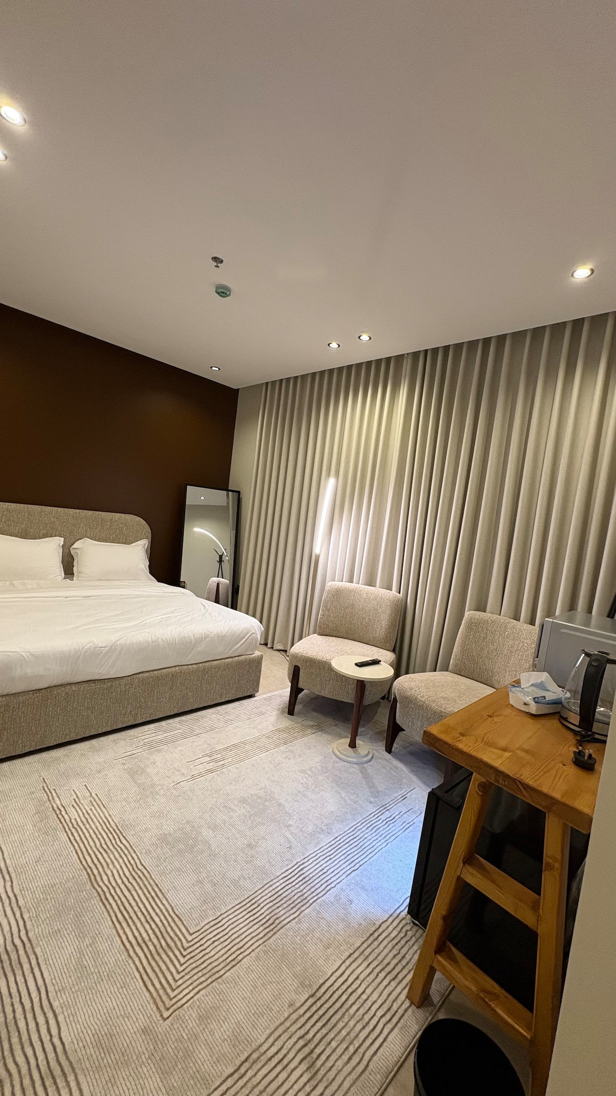 Izbaudiet uzturēšanos šajā elegantajā un plašajā studijas tipa dzīvoklī, kas veidots ar moderniem akcentiem un mājīgu komfortu. Mājoklī ir: • Divguļamā gulta • Viedtelevizors • Ērtas sēdvietas • Vannasistaba — viss vienā atvērtā, gaisīgā izkārtojumā. 📍 Galvenā atrašanās vieta: • 10 min līdz Ajdan pastaigai/ Corniche • 6 min līdz tirdzniecības centram Dhahran Mall • 10 min līdz Aramco un KFUPM • 10 min līdz Bahrain Causeway • Tikai 2 minūšu gājiena attālumā no Flamingo tirdzniecības centra Ideāli piemērots darījumu ceļotājiem vai pāriem, kas meklē relaksējošu, labi savienotu mājokli Alhobarā.