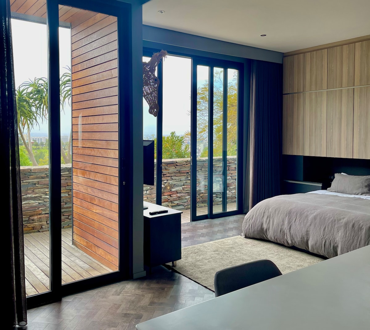Tikko uzbūvēts ekskluzīvs studijas tipa dzīvoklis ar unikālu un modernu estētiku. Atrodas klusā vietā, no kuras paveras plašs skats uz Keiptaunas centru un Signālhilu. 5 minūšu gājiena attālumā no vai vietējās apkaimes delikatešu/kafejnīcas un tikai 15 minūšu gājiena attālumā no Kloofstreet ar visiem tās restorāniem, bāriem un veikaliem.