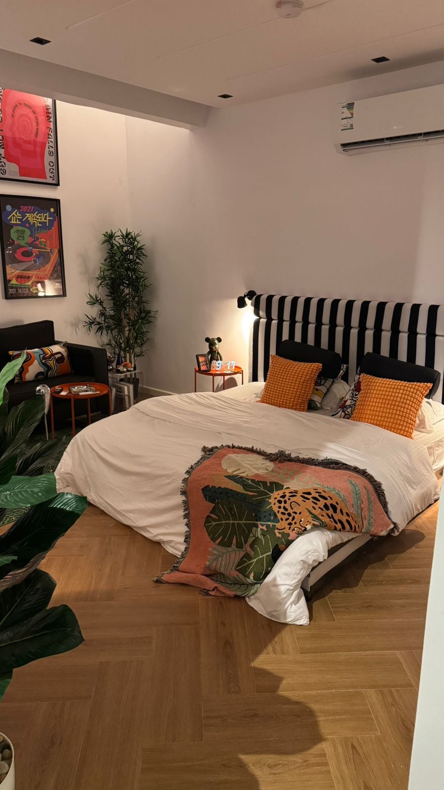 Studija ar siltu un ērtu dizainu, kas ir ideāli piemērota atpūtai vai darbam. Tajā ir galvenā gulta, 65 collu ekrāns ar Netflix, pilnībā aprīkots kafijas stūrītis un atpūtas zona. Viesnīcu pakalpojumi, Wi-Fi, uzkopšanas personāls un uzraugs vienmēr ir pieejami, lai jūs apkalpotu.