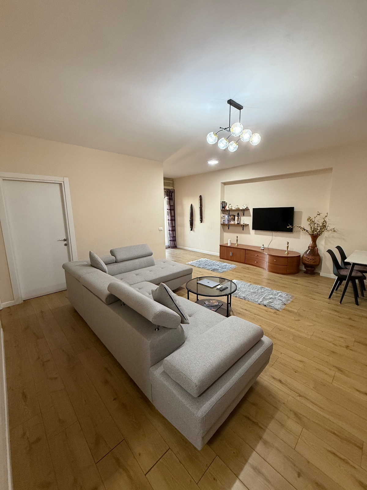 Mierīgas 2 guļamistabas tikai 15 minūšu attālumā no Skanderbega laukuma. Pilnībā aprīkota virtuve ar cepeškrāsni, plīti, ledusskapi, trauku mazgājamo mašīnu, espresso automātu, gaisa fritieri. Vannasistaba ar ieeju dušā, bidē, veļasmašīnu/žāvētāju, dvieļiem, tualetes piederumiem. Katrā guļamistabā ir gaisa kondicionētājs. Vienā ir karalis + dvīņi, otrs - karalis + mazuļu gultiņa. 1 Gb/s ātrs internets. 3. stāva ēka, nav lifta. Autostāvvieta: tuvumā esoša autostāvvieta 200 lekiem (2 € par nakti). Autostāvvieta uz ielas ir pieejama, taču par to nav atbildīgs viesis.