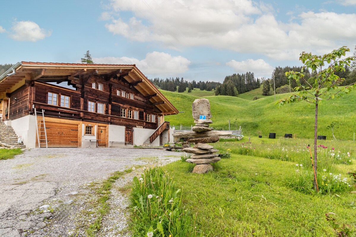 Ziemeļvalstu mēbelētā naktsmītne ar brokastīm atjaunotajā 100 gadus vecajā bijušajā lauku mājā. Konservatorijā un 1. stāvā dzīvo 3 suņi ar ragavām. Dzīvoklī pirmajā stāvā ir: guļamistaba ar skatu uz kalniem | Bērnu istaba/bibliotēka | Infrasarkanā pirts | Ēdamistaba/dzīvojamā istaba ar zviedru plīti un dīvāngultu | Virtuve | neliela vannasistaba. Istabas augstums vannasistabā, bērnu istabā un guļamistabā ir 1,83m. Pārējās istabas ir normāli augstas. PanoramaCard Thunersee (viesa karte) sniedz atlaides.