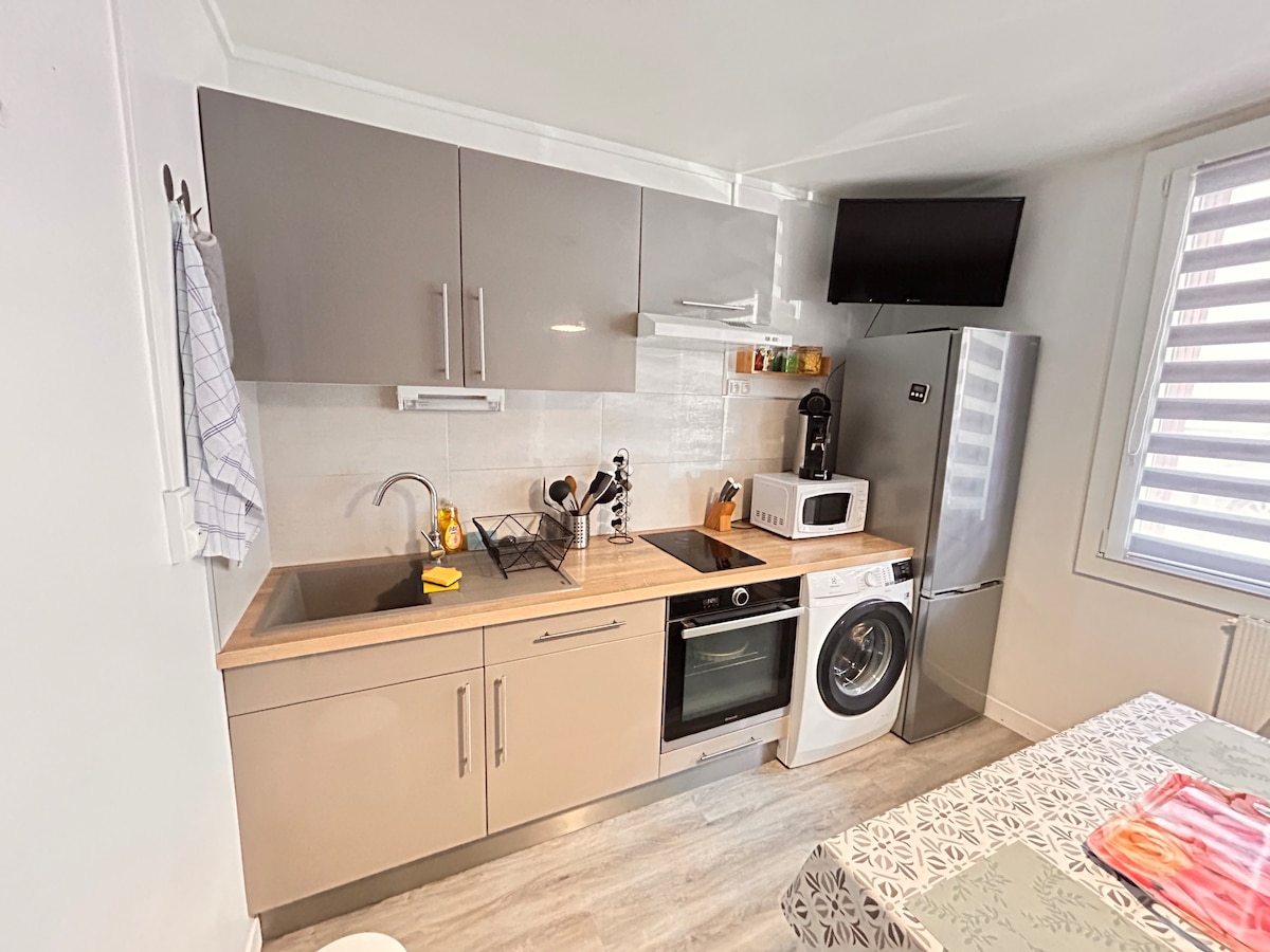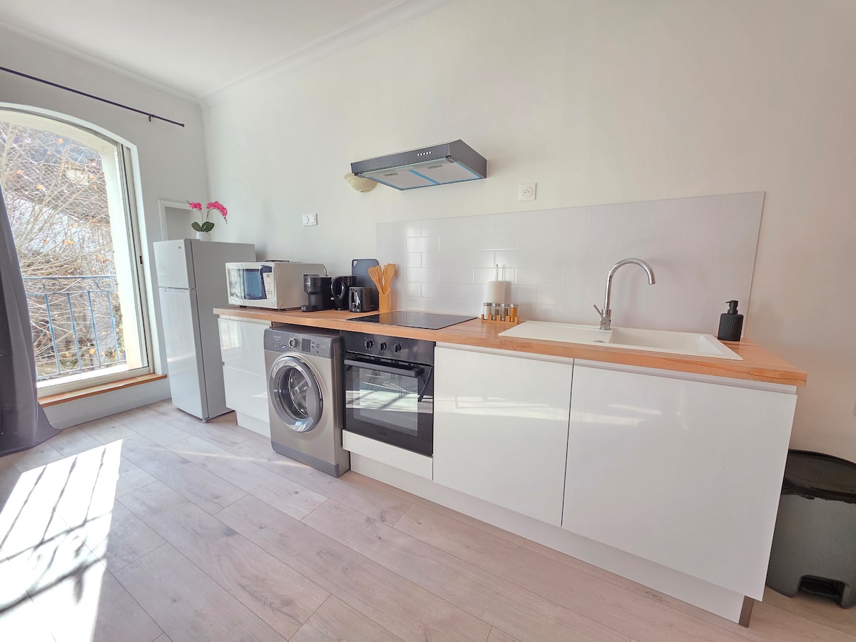 Izbaudiet stilīgu, mierīgu mājokli! Jūs gaida dzīvoklis "La Provence - 1. stāvs" atrodas klusā ielā vecajā centrā, 5 minūšu gājiena attālumā no pilsētas centra nelielas 3 stāvu ēkas 1. stāvā (bez lifta). Pilnībā izremontēts un nesen aprīkots 2023. gadā, tas ir klasificēts kā 3* Gîtes de France. Eleganti iekārtots, tas ir veidots tā, lai uzņemtu līdz 4 cilvēkiem. Dzīvoklī ir interneta pieslēgums, izmantojot optisko šķiedru, kā arī televizora kastīte.