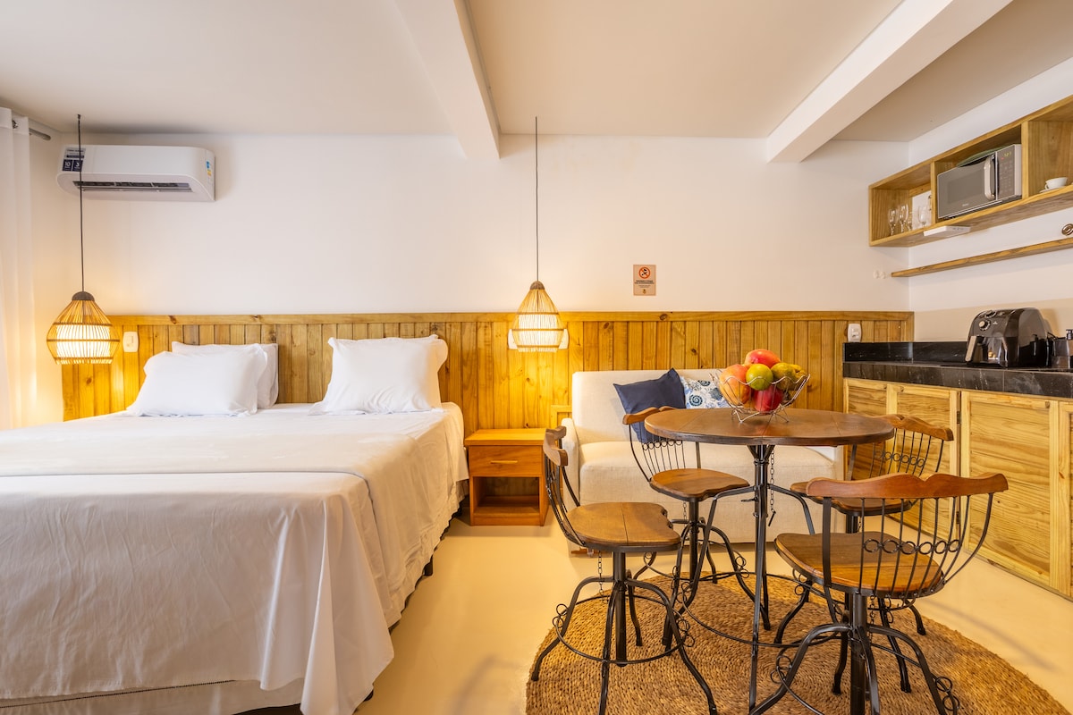 Labākā vieta ar satriecošu skatu uz jūru! Tikai 10 minūšu gājiena attālumā no pludmales un 3 minūšu attālumā no Arraial centra. Blakus Mucujê ielai, kur atrodas visa Arraial naktsdzīve. Labākie restorāni un bāri atrodas mazāk nekā 5 minūšu attālumā no pasākuma norises vietas. Izbaudiet saullēktu apbrīnojamajā jūrā. Luksusa apartamenti, īpaši liela divguļamā gulta, plaša vannasistaba ar vannu, mini bāru, Split gaisa kondicionētāju, 55'TV un balkonu. Kafejnīca da manha iekļauta, pasniegta klints virsotnē ar lielisku skatu uz jūru!
