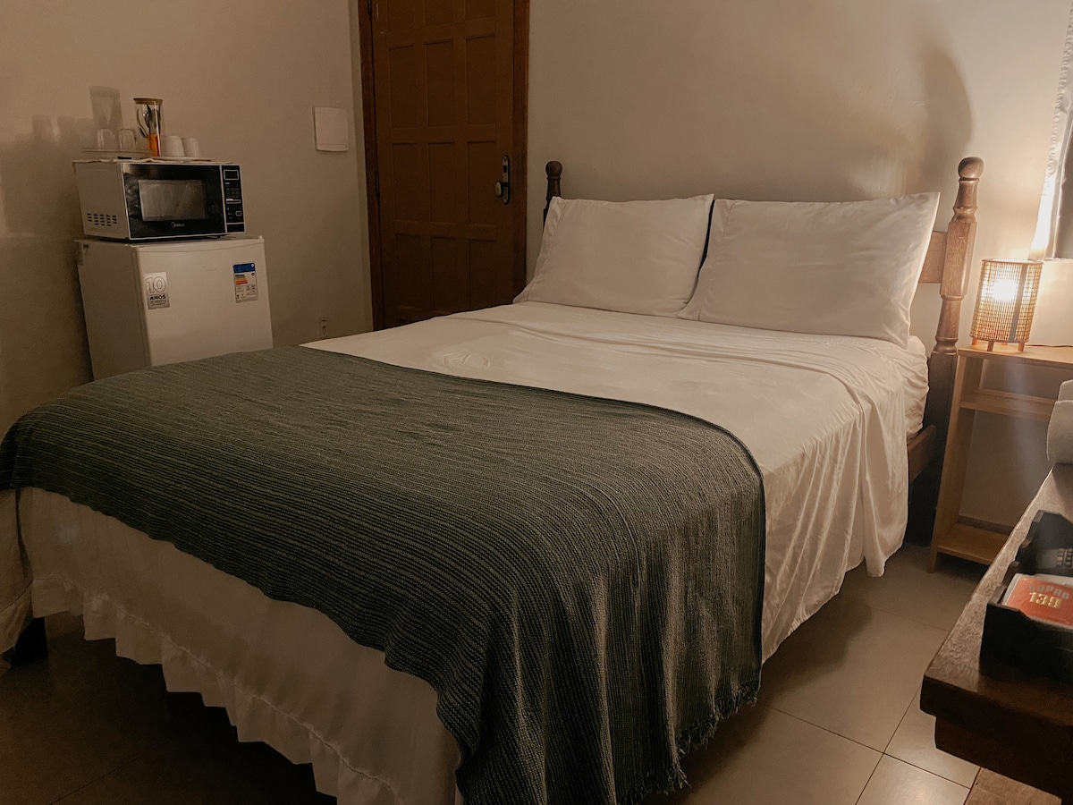 Praktiski un ērti: šis ir Flora Suite numurs! Privāta istaba ar gaisa kondicionētāju, viedtelevīziju, mini bāru, mikroviļņu krāsni, galdu ar diviem krēsliem un vannasistabu. Klusā ielā centrā, 5 minūšu gājiena attālumā no Mucugê ielas, veikaliem, restorāniem, bāriem, tirgiem, aptiekām un sabiedriskā transporta izejām uz reģiona galvenajām ekskursijām un pludmalēm, kurās tiek izmantotas automašīnas. Praticity un drošība, lai dzīvotu gaišās dienas un izbaudītu labāko, ko Bahia var piedāvāt. "Ground suite" numurs.