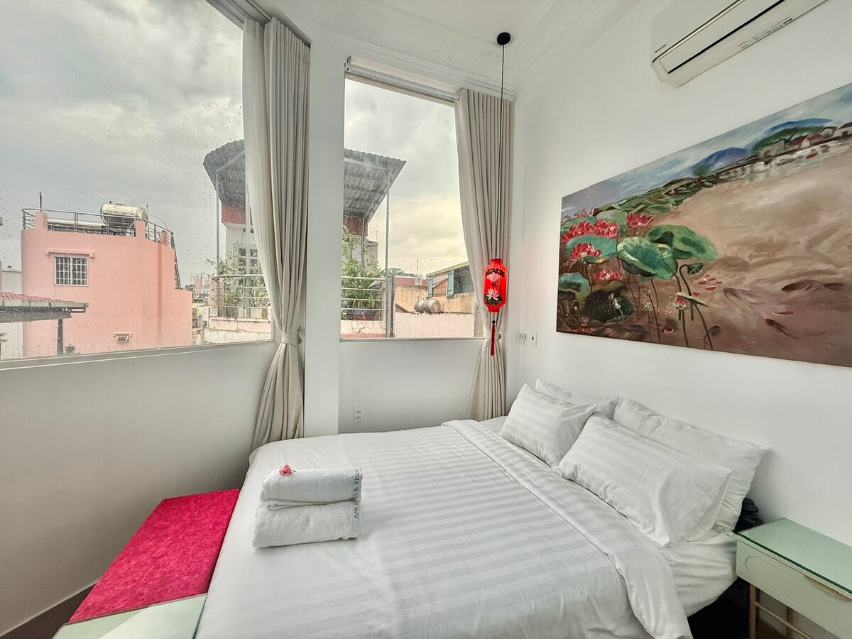 Mūsdienīga gadsimta vidus boutique viesnīca, kurā greznība satiekas ar retro, un augsta klase satiekas ar augstu komfortu. Atrodoties Binh Thanh rajonā, izbaudiet šo mierīgo vidi dzīvojamā rajonā ar priviliģētu skatu uz Mong Trieu baznīcu. Mierīga oāze, lai atpūstos no pilsētas neprātīgā ritma. Tās klasiskais franču stila stils ir pretstats modernajam un minimālistiskajam interjeram, ko rotā aizraujošas mozaīkas.
