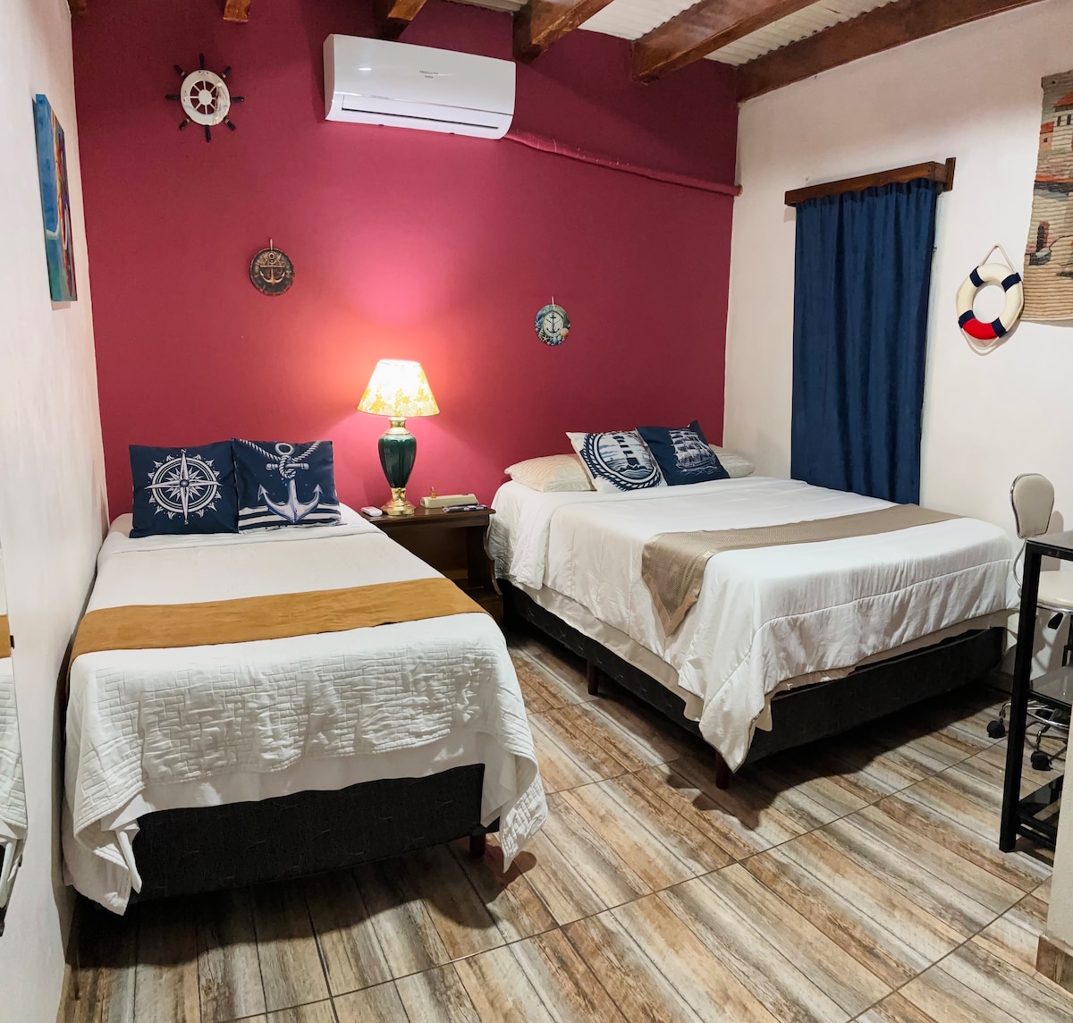 • Furnished terrace + complimentary coffee to unwind • Luxurious and safe apartment • 15 minutes from the U.S. Embassy • 2 bedrooms, each with a private bathroom, blackout curtains, and A/C • Fully equipped kitchen • Free washer and dryer • 3 Smart TVs with Netflix • Ideal location: walk to Multiplaza Mall, banks, and restaurants • Perfect for 4 guests (up to 5: 1 on the sofa) • Pets welcome!