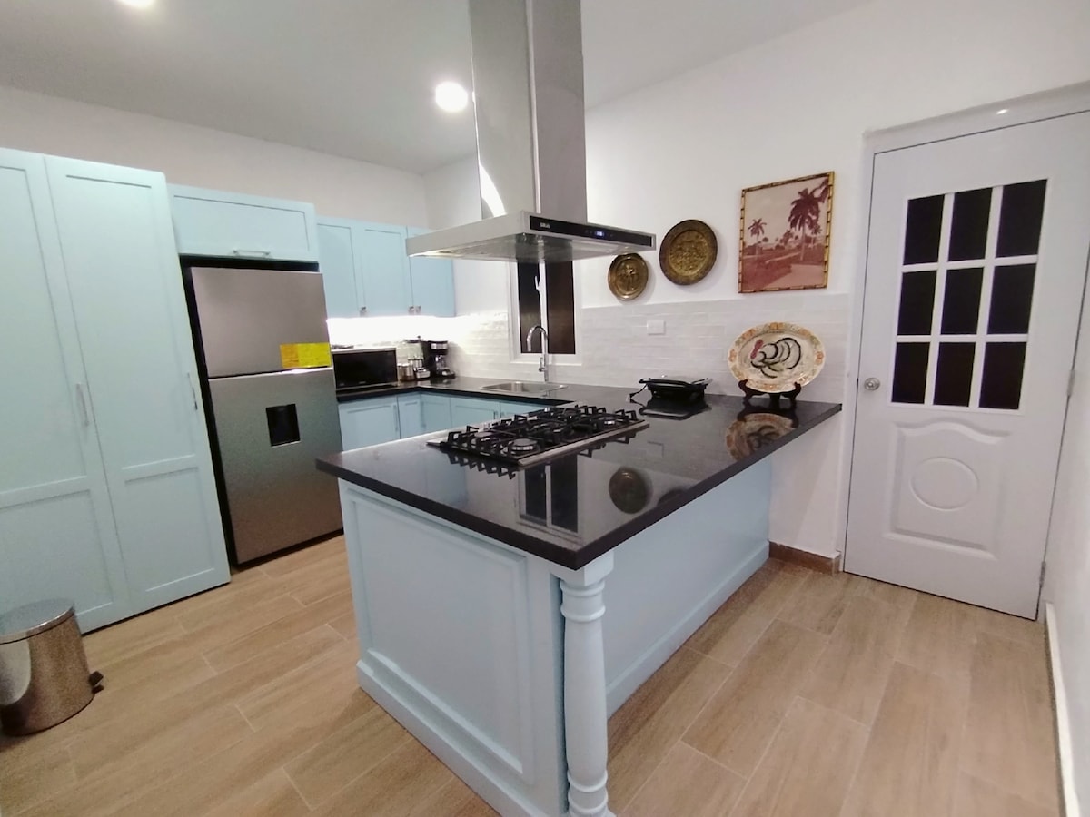 Este alojamiento con estilo único lujoso confortable seguro minimalista a 30minutos del malecón y 1:20 playa bocachica , buenos centro nocturno 5minutos supermercados 7minutos y centros comerciales, energía eléctrica 24/7 y agua permanente.