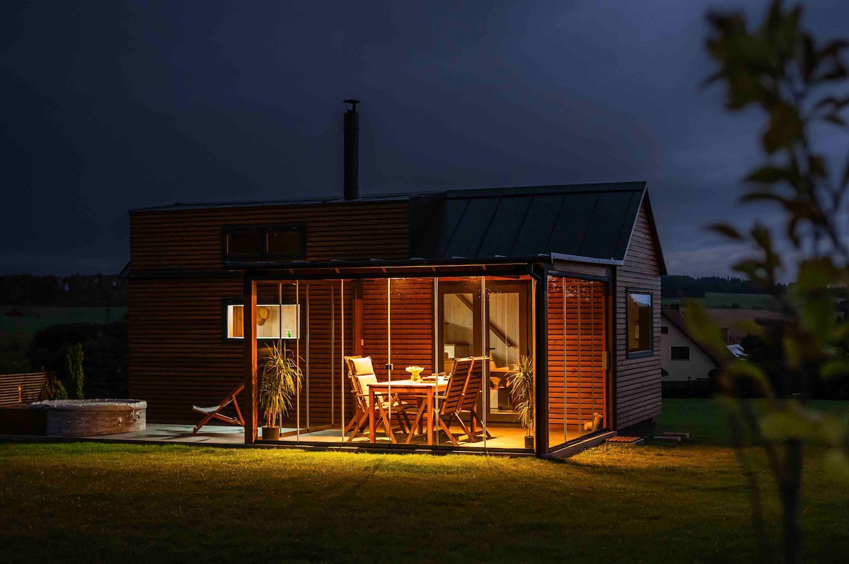 Chatka Borowka is a true tiny houses trend. It is full of sun, wood and has a view worth one million dollar and abit more. View of green mountains and city lights gleaming far away. Bad weather? You can turn on a projector or enjoy a sauna Chatka Borowka is located at the very border of Giant Mountains National Park and offers unlimited possibilities of relaxing in the open air. Chatka Borowka is a place made for lonely tourists and couples. With a bit of necessary luxury like air condition.