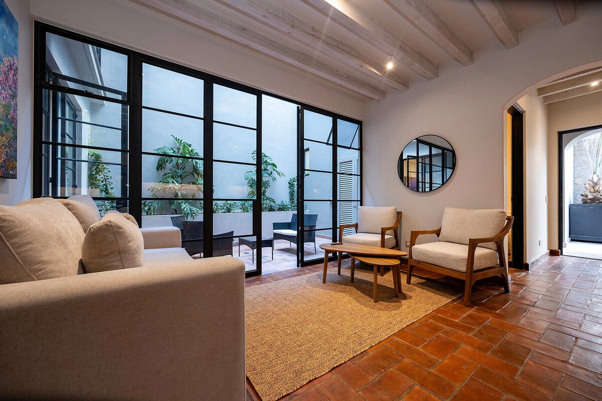 Experience Paseo del Centro, a boutique condominium where colonial beauty meets modern comfort. This elegant first-floor apartment features two king bedrooms, each with a private bathroom, making it ideal for couples or friends seeking comfort, luxury, and the perfect location — just steps from the Parroquia de San Miguel Arcángel and the city’s best restaurants and rooftops.