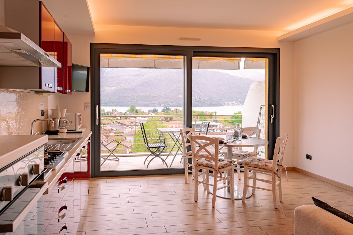 Panorāmas augšstāva dzīvoklis ar gaisa kondicionētāju, kas ietver vienu panorāmas "LIGHTHOUSE-TOWER stila" viesistabu, vienu plašu dvīņu guļamistabu, vienu vienguļamo guļamistabu, 2 vannasistabām, minivirtuvi un lielu sauļošanās terasi. Mēs esam viens no nedaudzajiem mājokļiem, tostarp "TIČĪNO BIĻETE", lai BEZ MAKSAS izmantotu visu sabiedrisko transportu Tičīno kantonā jūsu uzturēšanās laikā. Bezmaksas peldbaseina izmantošana dārzā, plaša bufete ar brokastīm no 6:30 līdz 10:30 un autostāvvieta uz vietas ir pieejama par maksu.