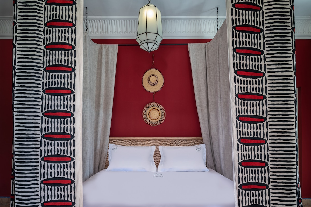 Palieciet pašā Marakešas sirdī mūsu 2 guļamistabu, 2 vannasistabu dzīvoklī. Izbaudiet augstākās klases Simmons gultasveļu, ātrgaitas WiFi (optiskās šķiedras) un modernu dekoru ar privātu baseinu. Pilnībā aprīkota pilnībā aprīkota virtuve, stilīga vanna un itāļu duša. Īsas pastaigas attālumā no Jemaa el-Fna laukuma, Plazza un Carré Eden. Baseins nav apsildāms. NB: Neprecējušies marokāņu pāri nav atļauti.