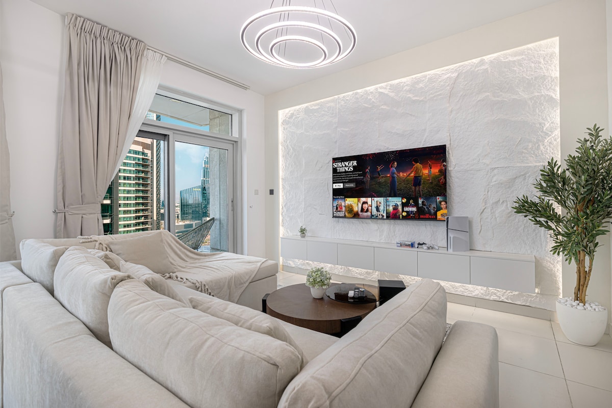 Laipni lūdzam jūsu greznajā atpūtā Dubaijas centrā! No šī dzīvokļa, kas atrodas īpaši augstā stāvā, paveras elpu aizraujošs skats uz pilsētu un bulvāri. Tikai dažu soļu attālumā no Burj Khalifa, Dubaijas operas un Dubaijas tirdzniecības centra tas ir ideāli piemērots ģimenēm un darījumu braucieniem. Telpas ir gaišas un stilīgas, ar mājīgu dzīvojamo zonu, pilnībā aprīkotu virtuvi, ērtām gultām un elegantām vannasistabām. Atpūtieties, uzlādējieties un izbaudiet Dubaijas dinamisko enerģiju no visas pilsētas sirds.