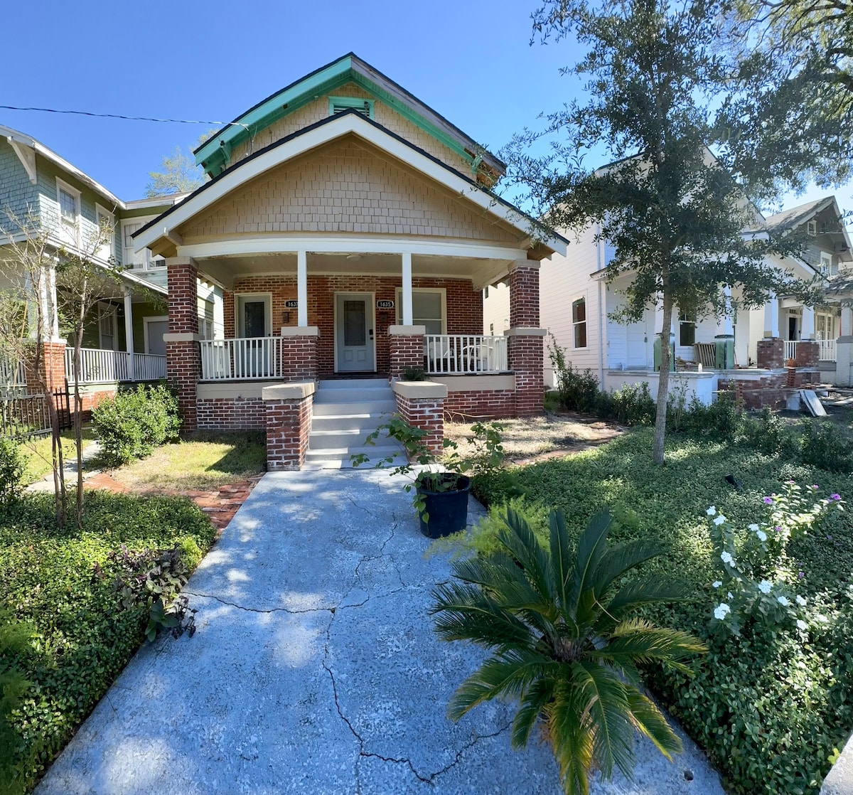 Lilly House guļ 6 naktis un piedāvā slēgtu autostāvvietu, segtu mājīgu verandu ar šūpolēm un pagalmu ar ugunskura vietu, grilu un pagalma spēlēm. PASTAIGAS ATTĀLUMĀ ATRODAS restorāni, alus darītavas un kafejnīcas. Izbaudiet virtuvi, veļas mazgātavu uz vietas, viedtelevizorus, Wi-Fi, Bluetooth radio, ierakstu atskaņotāju un darba vietu. Tikai 1 jūdzes attālumā no Džeksonvilas centra un dažu minūšu attālumā no TIAA Bank stadiona, Vystar arēnas un citām vietām. Mīļdzīvnieki un pasākumi atļauti ar iepriekšēju apstiprinājumu. Rezervējiet mājokli jau šodien!