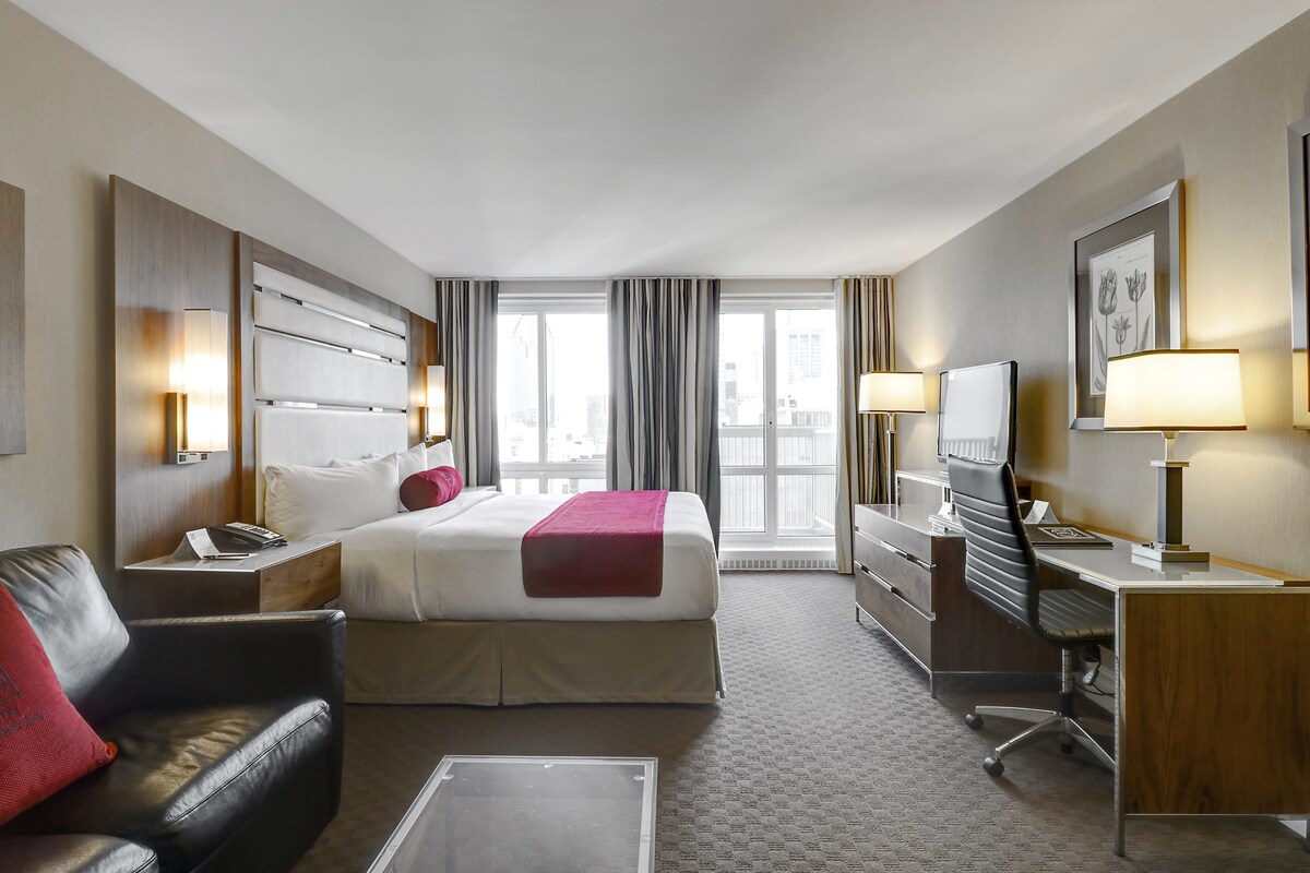 Located in the heart of downtown Montreal, our hotel offers the perfect blend of comfort, convenience, and value. Just steps away from the city’s top attractions, vibrant restaurants, shopping districts, and major public transit lines, it’s the ideal choice for both leisure and business travelers. Guests can enjoy modern, well-equipped rooms designed for relaxation, along with 24-hour front desk service and friendly staff ready to make your stay pleasant, comfortable, and truly memorable.