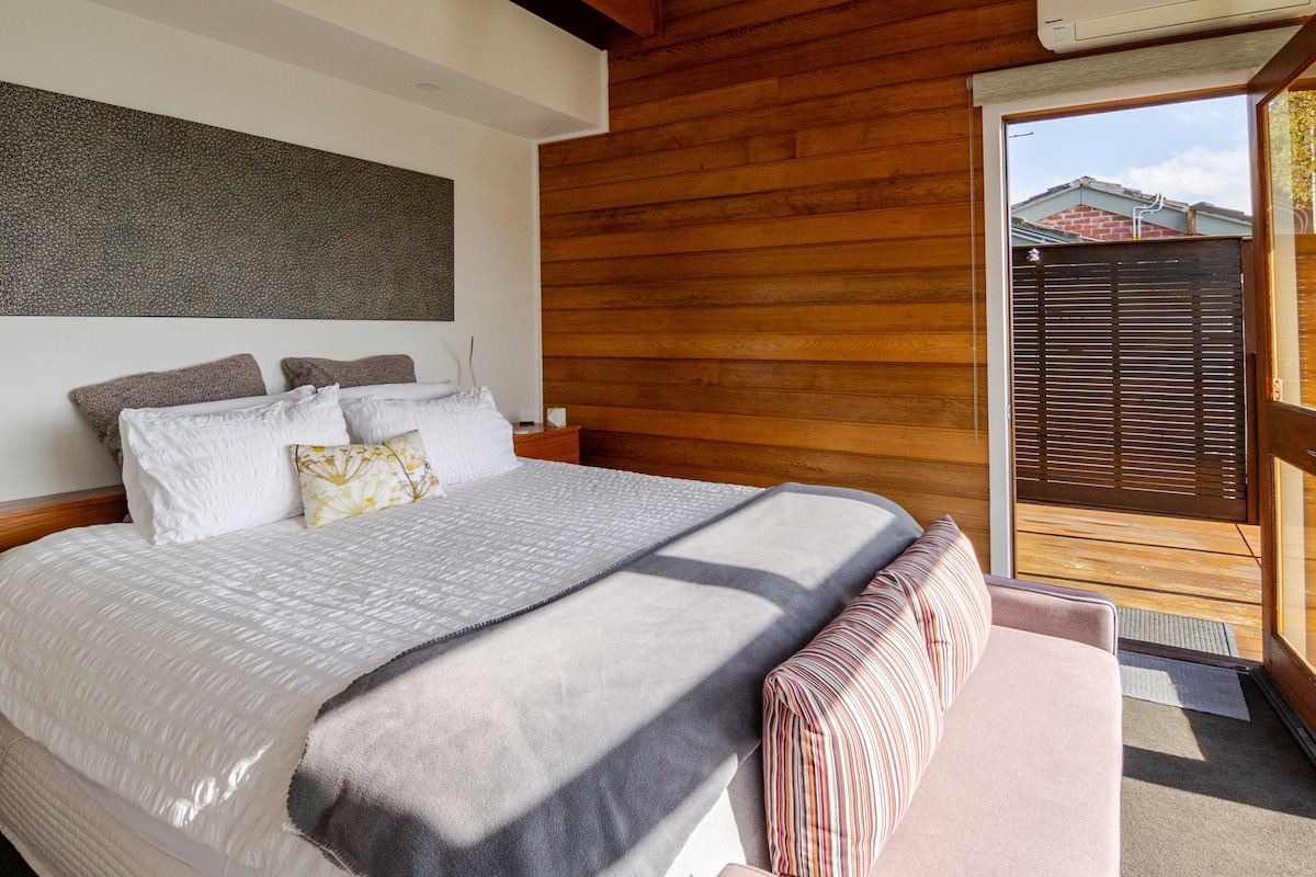 We offer a modern, private, two bedroom guesthouse to accommodate 4 guests. The Guesthouse is attached to the rear of our property. It is safe, private, and unique. You'll be close to some of the best wineries, restaurants, cafes, the famous Peninsula Hot Springs, and Alba Springs, as we are situated in the heart of the Peninsula. STRICTLY - NO PARTIES - NO SCHOOLIES
