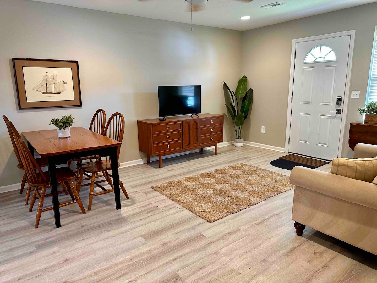Tikko atjaunoti viesu apartamenti Čārlstonas pussalas augšdaļā, ļoti tuvu Hemptonas parkam un Citadeles militārajai koledžai. Plašs, ērts, kluss, ar autostāvvietu un atrodas aptuveni 13 minūšu brauciena attālumā no vēsturiskā/darījumu rajona vai 3 kvartālu attālumā no bezmaksas maršruta autobusa. Lūdzu, ņemiet vērā, ka minivirtuves zonā nav plīts. Ņemiet vērā arī kāpnes uz otrā stāva atrašanās vietu gadījumam, ja rodas problēmas ar kustību traucējumiem.