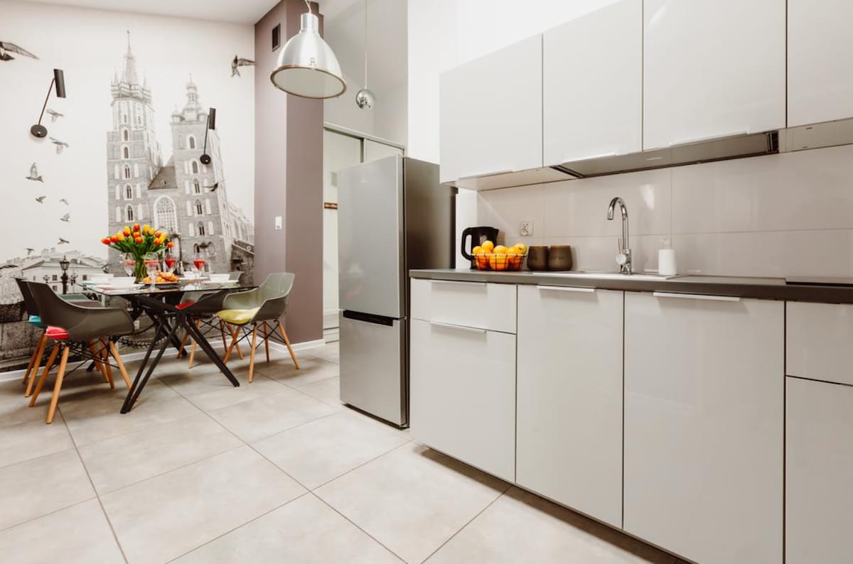 Elegants dzīvoklis, kas atrodas pašā Krakovas sirdī, ir ideāla vieta patiesai atpūtai. Interjers ir veidots stilīgā, melnbaltā krāsu gammā, ko pārtrauc izteiksmīgi sarkani akcenti, kas piešķir telpai raksturu. Unikāla priekšrocība ir platā palodze, kur var ērti pasēdēt ar tasi kafijas vai glāzi vīna un vērot Krakovu un tās iedzīvotājus ikdienas ainavā. Ielu troksnis, skaņas, mirgojošās gaismas rada neaizmirstamu, gandrīz kinematogrāfisku atmosfēru.