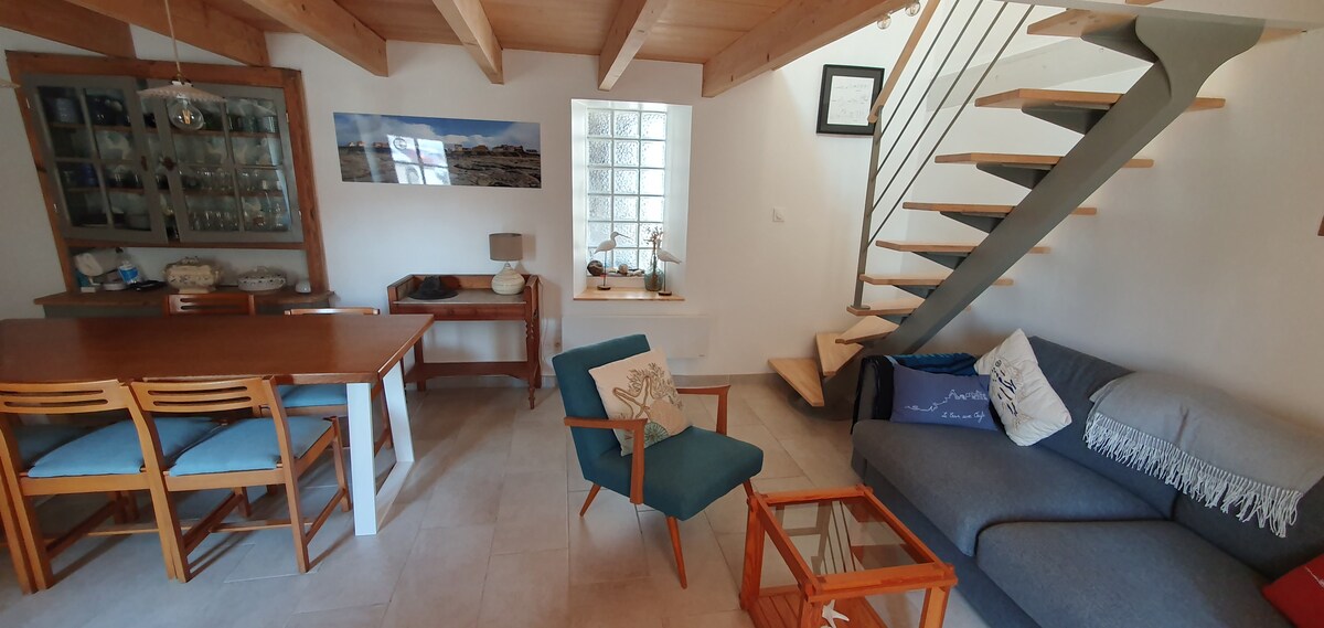 Izbaudiet stilīgu un centrālu naktsmītni. Šī 50 m² naktsmītne, kas atrodas dažu simtu metru attālumā no pludmales, kas joprojām ir autentiska un atrodas pašā vecā zvejnieku ciematā, piedāvās jums visas ērtības, kas nepieciešamas vienkārši patīkamai brīvdienām. Valsts atzītas teritorijas sirdī Grand Site de France apzīmējums, kas " nodrošina ainavu un telpu gara saglabāšanu", ir pieejama cilvēkiem ar kustību traucējumiem, un tai ir elektrības terminālis.