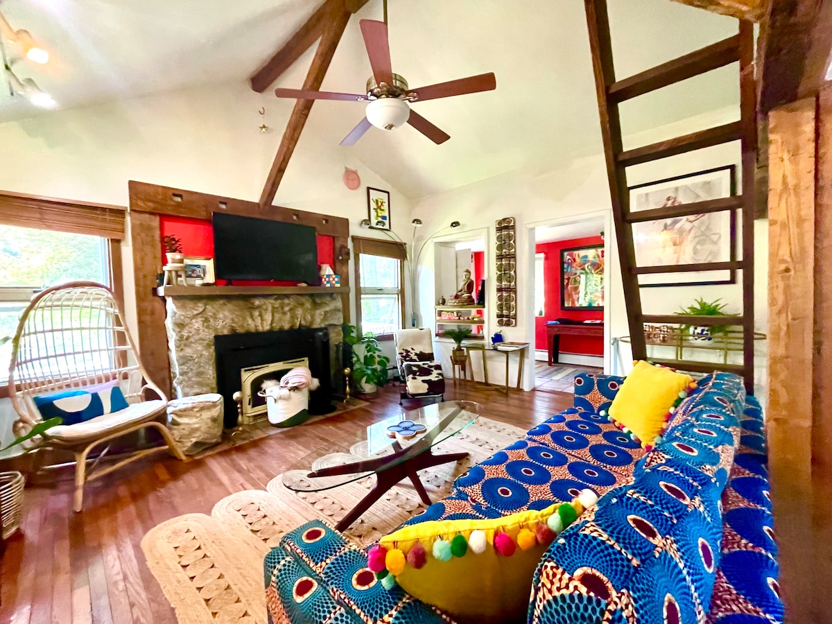 El Girasol, "The Sunflower", saulaina, ģimenei un mīļdzīvniekiem draudzīga kotedža Ezopuskrīkā Katskilas kalnos. Mūsu mājoklis ir pilnībā aprīkots ar globāliem un antīkiem atradumiem. Šajā burvīgajā kotedžā ir 2 gultas, plaša dzīvojamā istaba ar lielu, ērtu guļamistabas dīvānu un mājīgu elektrisko kamīnu un pilnībā aprīkotu virtuvi ar ēdamistabu. Piekļuve upītei, grils, ugunskura vieta, iežogots pagalms un 2 stāvi padara mūsu mājokli par lielisku galamērķi atpūtai kopā ar ģimeni, draugiem un mīļdzīvniekiem.