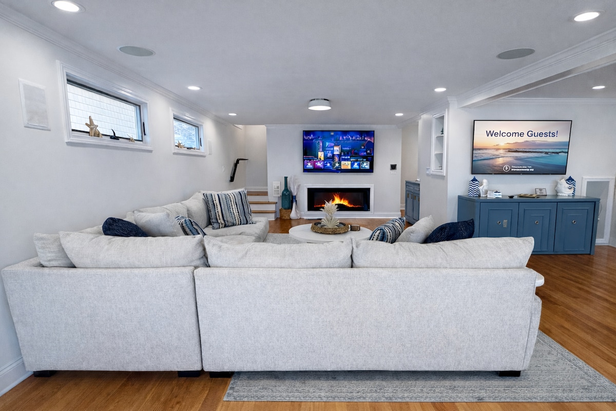 Aizbēdziet no šī greznā 4 guļamistabu, 2,5 vannu mājokļa okeāna krastā satriecošajā Longailendas šaurumā. Izbaudiet tiešu piekļuvi pludmalei, privātu burbuļvannu un pilnībā aprīkotu terasi ar gāzes grilu un ēdamistabu. No šīs atpūtas vietas, kas ir ideāli piemērota ģimenēm vai grupām, piedāvā elpu aizraujošus skatus, pilnu virtuvi, arkādes spēles un modernas papildērtības. Tas atrodas dažu minūšu attālumā no restorāniem un veikaliem un ir ideāli piemērots atpūtai vai piedzīvojumiem. Rezervējiet tūlīt, lai baudītu nevainojamu komforta un piekrastes šarma apvienojumu.