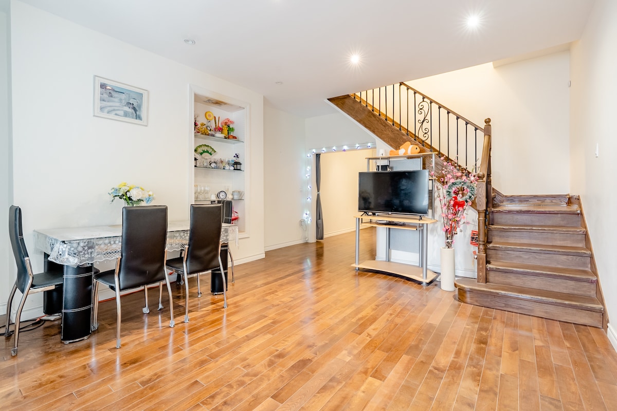 The perfect home base for your stay in Toronto! Our spacious, cozy suite is located on the lower level of our family home. You'll have access to a bedroom, kitchen, living room, dining area, small den, 3-piece bathroom w/standing shower, and laundry. Rest and relax on a quiet street, then make your way downtown in just 10-20 mins, or stroll to lively Greektown and The Danforth in 11 mins to find fabulous cafes, restaurants, shops, bars, the Danforth Music Hall, and transit stations.