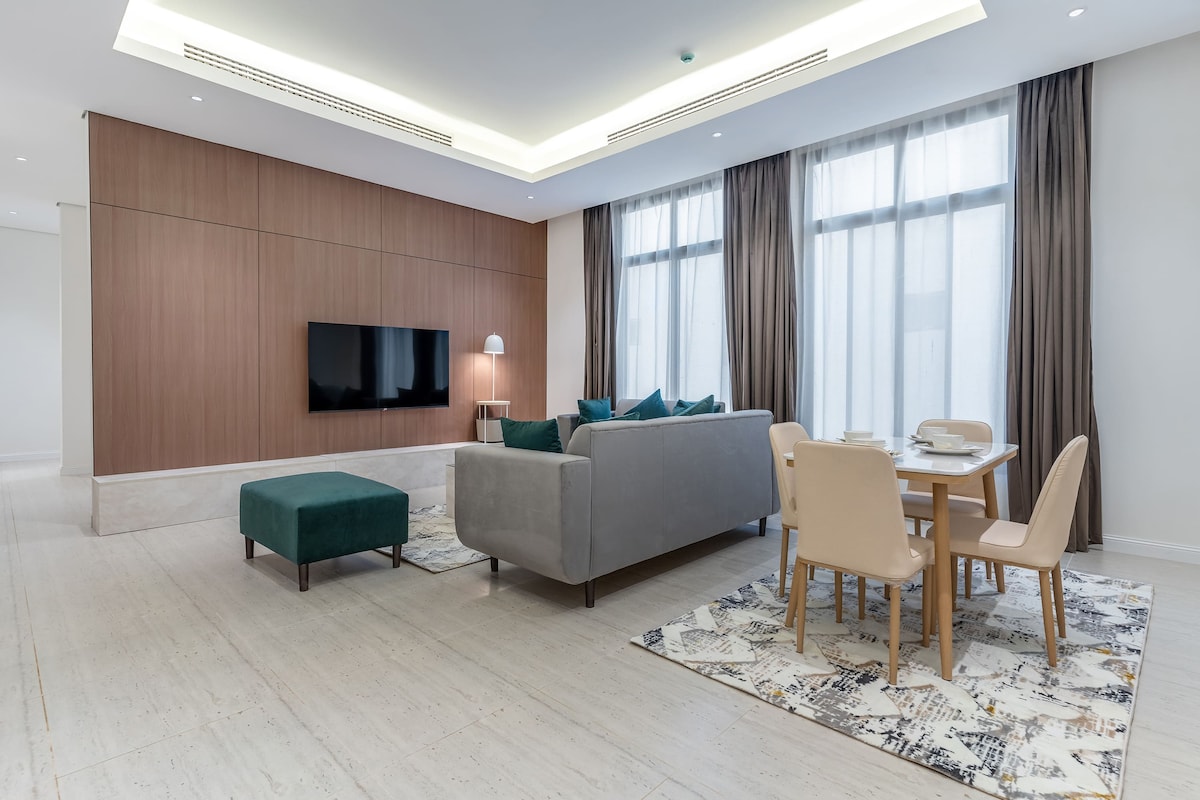 Atklājiet īpašu mājokli ērtā dzīvoklī Alhobaras pilsētā. Dzīvoklis lepojas ar vairākām funkcijām: 1. Gudra un droša ieeja, izmantojot viedo durvju slēdzeni. 2. Skaists balkons ar skatu. 3. Kafijas stūrītis, kas aprīkots ar kafijas automātu, mikroviļņu krāsni un nelielu ledusskapi. 4. 4K viedais ekrāns. 5. Ātrs 5G interneta savienojums. 1. Bahreinas tilts - 5 minūšu laikā. 2. Rashid Mall - 10 minūtes. 3. Krastmala - 5 minūtes.
